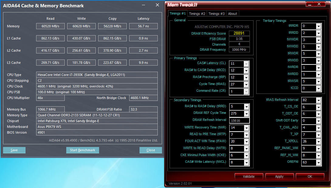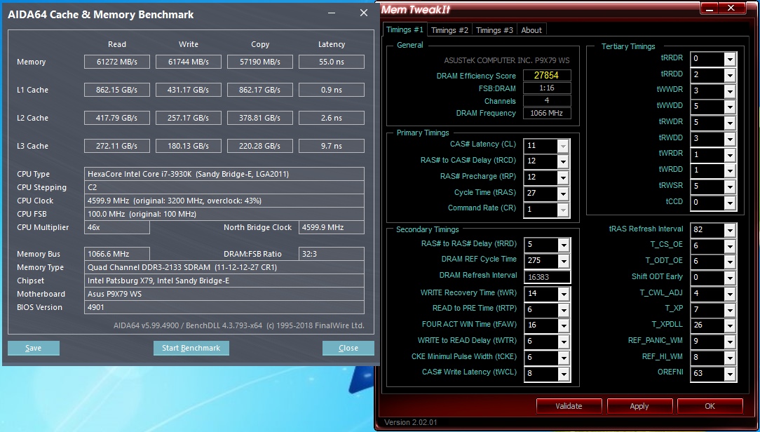 Всем привет! имеют вот такую память в 4 канале на частоте 2133 МГц, процессор i7-3930K@4,6 ГГц. Можно ли ещё подкрутить память, чтобы улучшить результаты? смотрел гайды разные, вот и получилось так.