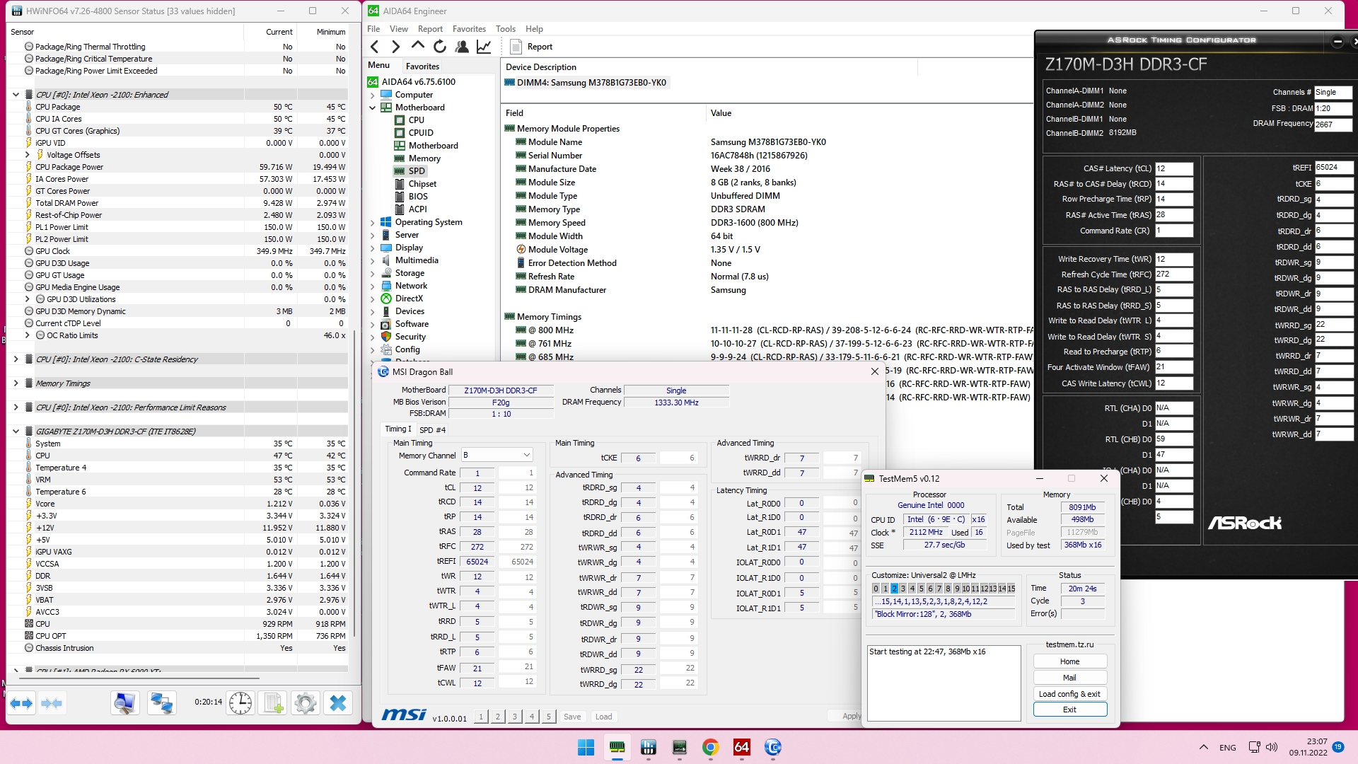 Всем привет. Помогите пожалуйста. Конфигурация следующая, ASRock Z68 Extreme 3 Gen 3 биос P.1.30, Core i7 2600 (без K), 16 Gb (4X4) M378B5273CH0-CH9 Samsung 1333. Не получается нормально разогнать память так, что бы в тестах не было ошибок. Подскажите, как правильно разогнать память? Пробовал 2133 на таймингах 10:11:11:28 1T при разных напряжениях, в Gold Memory 7.98 Pro выдает ошибки где- то на 17 минуте тестов. Пробовал 9:10:10:28 1T - тоже самое, ошибки при разных напряжениях и частоте памяти. Сейчас сбросил всё в дефолтные настройки. Как правильно разогнать память, без ошибок?