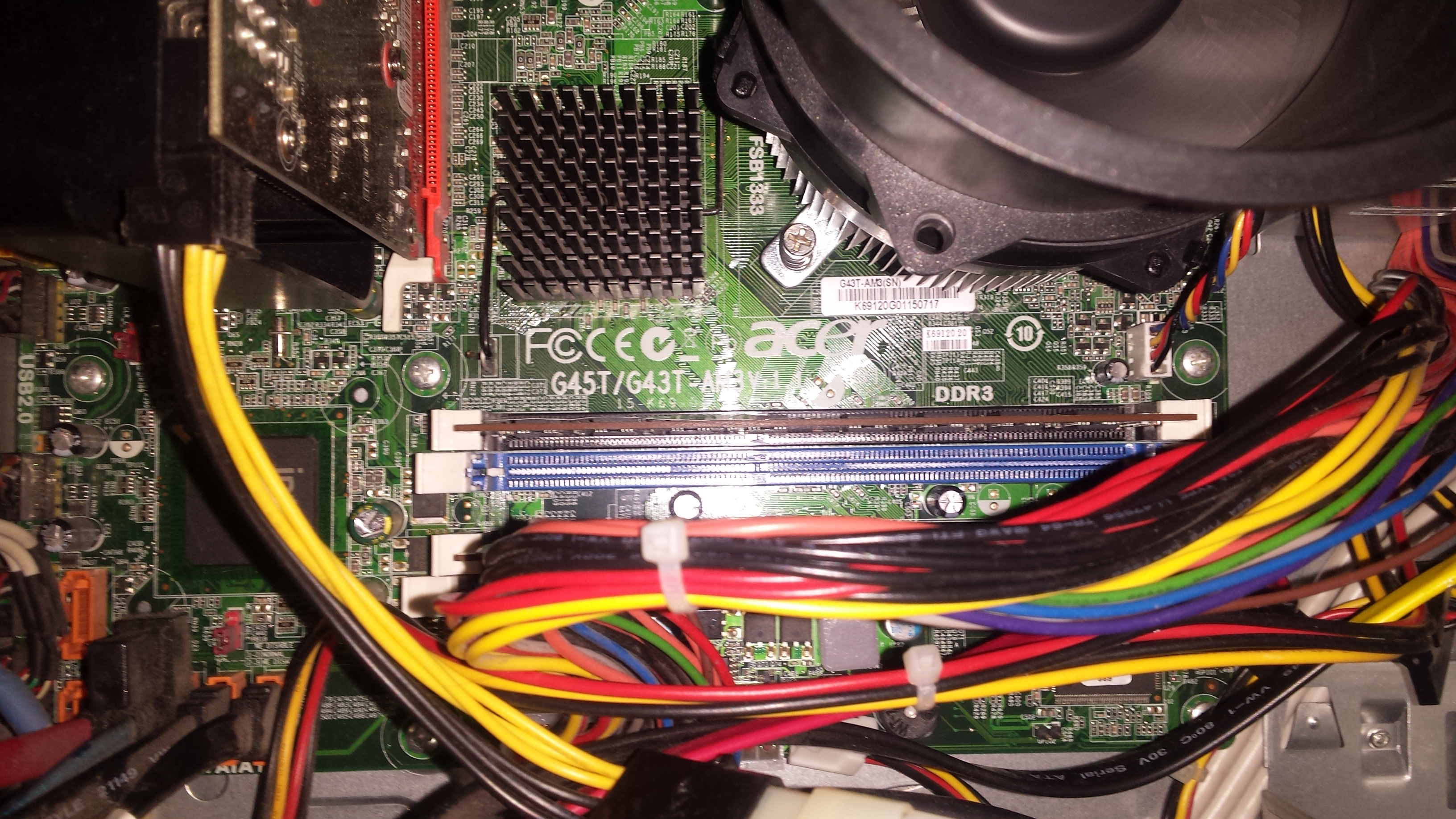TiZERone, если верить данной информации по характеристикам http://www.findlaptopdriver.com/specs-acer-eg43m/ то к сожалению вы купили не ту память. Ваша материнская плата поддерживает DDR2, а вы пытаетесь воткнуть DDR3, собственно два несовместимых формата. Плюс ко всему ваша материнская плата поддерживает максимум 8ГБ оперативы.