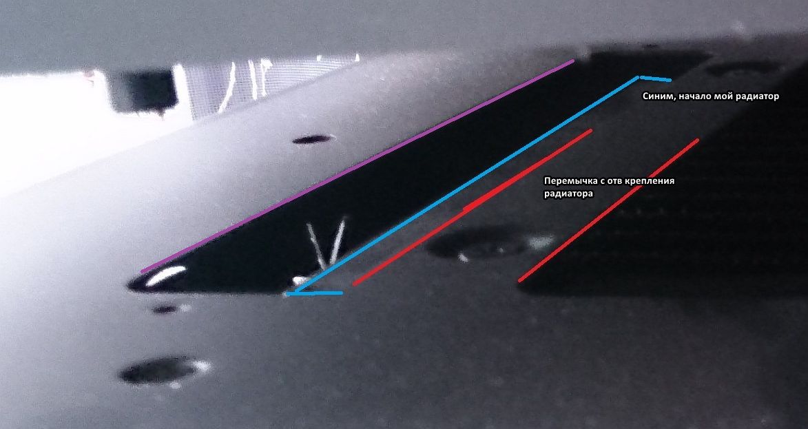 Вот картинки, сзади на верху отверстия под крепления радиатора начинаются с отступом примерно на 70 мм. Если сверлить отверстия ближе к задней стенке, то другие отверстия, в середине и спереди не совпадут, там уже негде сверлить.