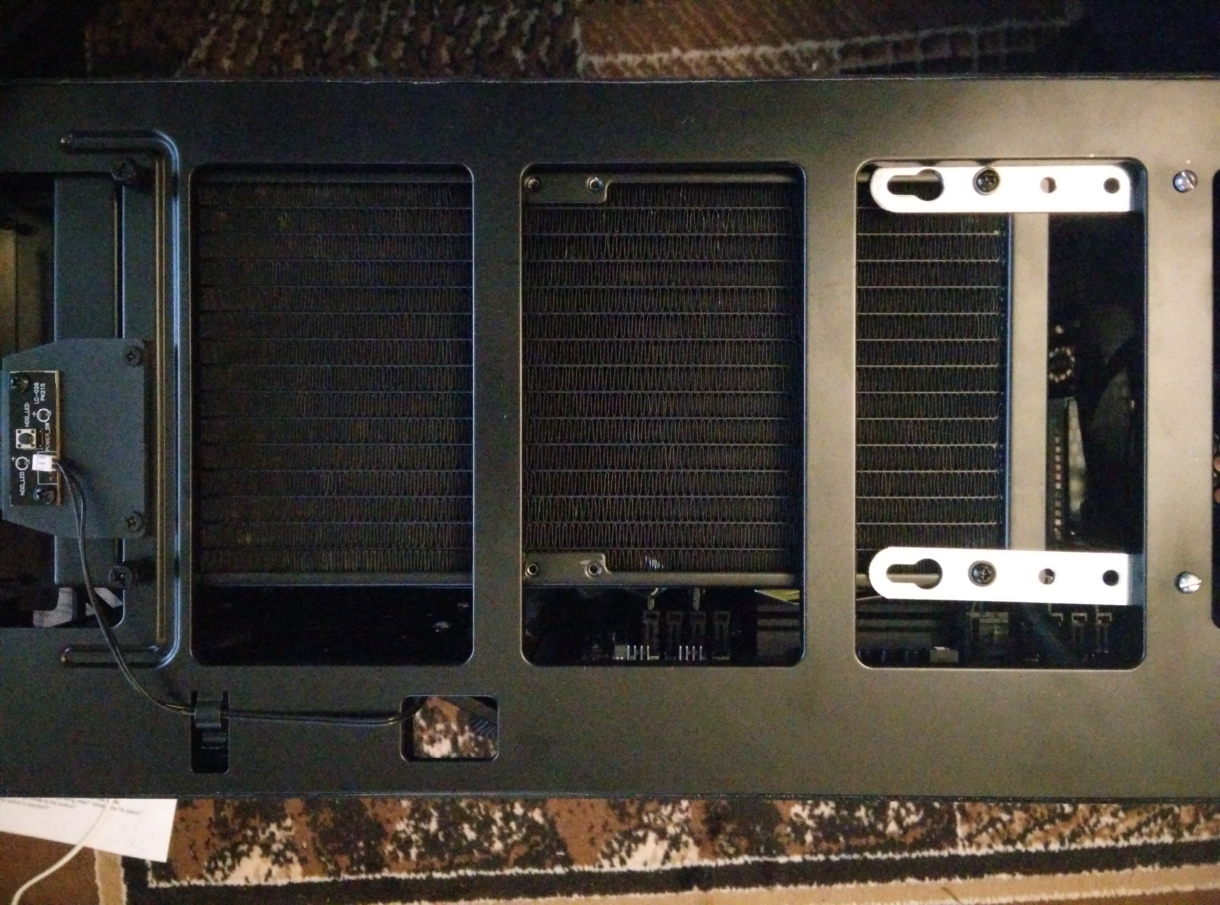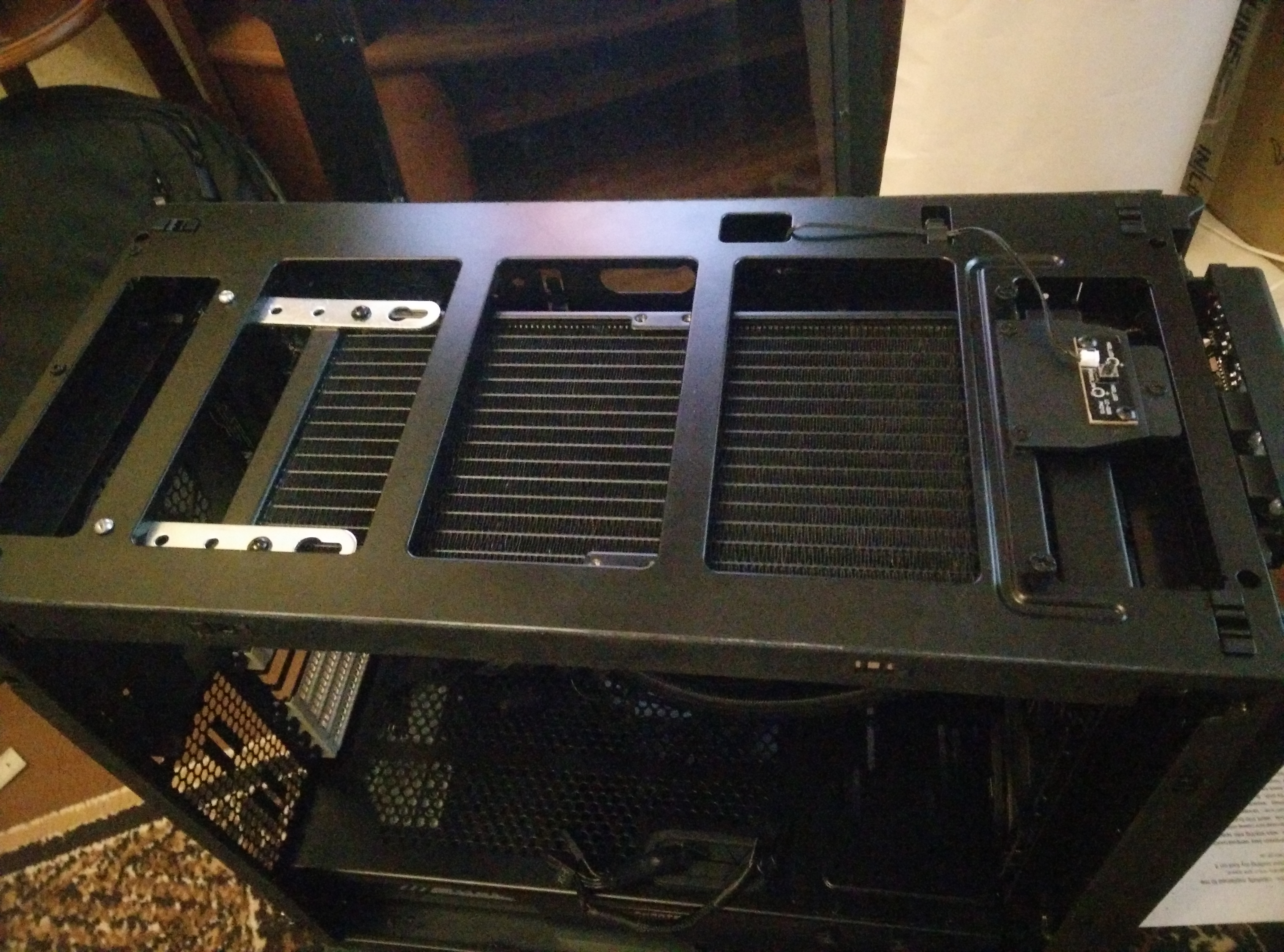 Мое первое сообщение! Как и хотел давным-давно сделать вандализм над своим корпусом Phanteks Evovl ATX - убрать выдвижную решетку для радиаторов и прикрепить СЖО к верхней раме. Сэкономил при этом 20 мм. Там можно еще сэкономить 15 мм, но будет куда радикальнее - оставил пока так.