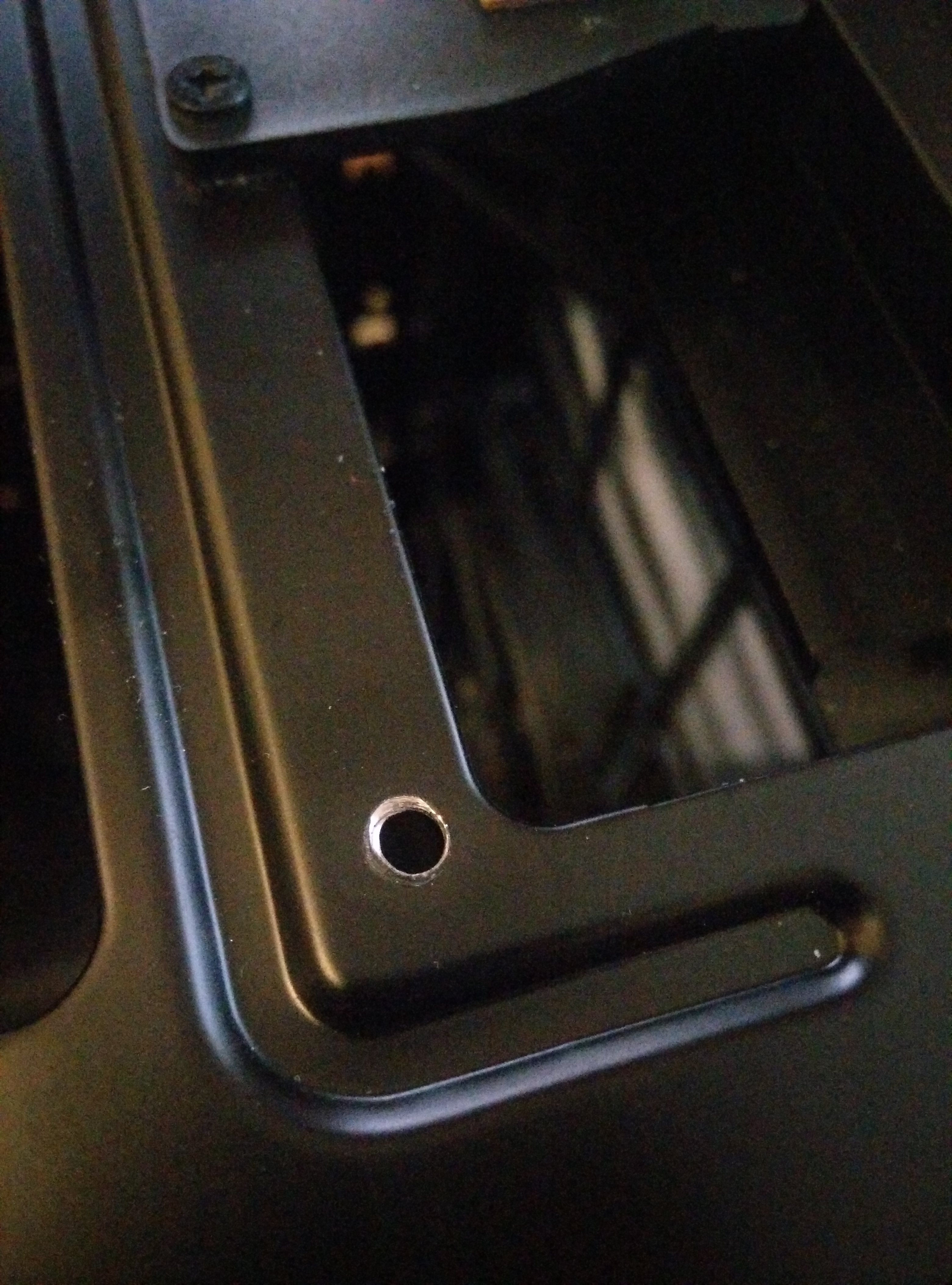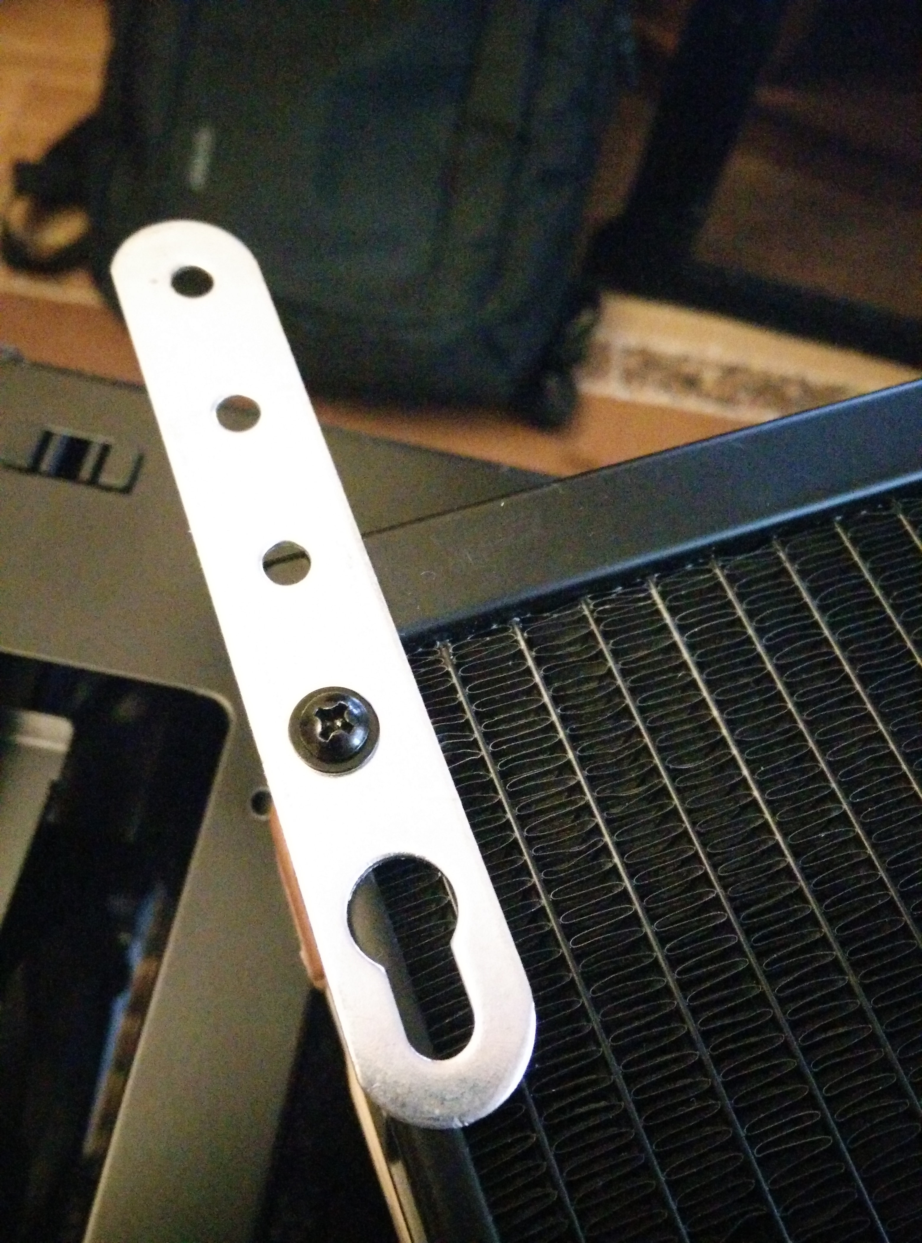 Да, легкий перекос радиатора Corsair H110i присутствует, но он вызван тем, что я использовал в передней части комплектные винты с удобной ручки, а они коротковаты, а в магазины пока винты М3 нужной длины не нашел =((