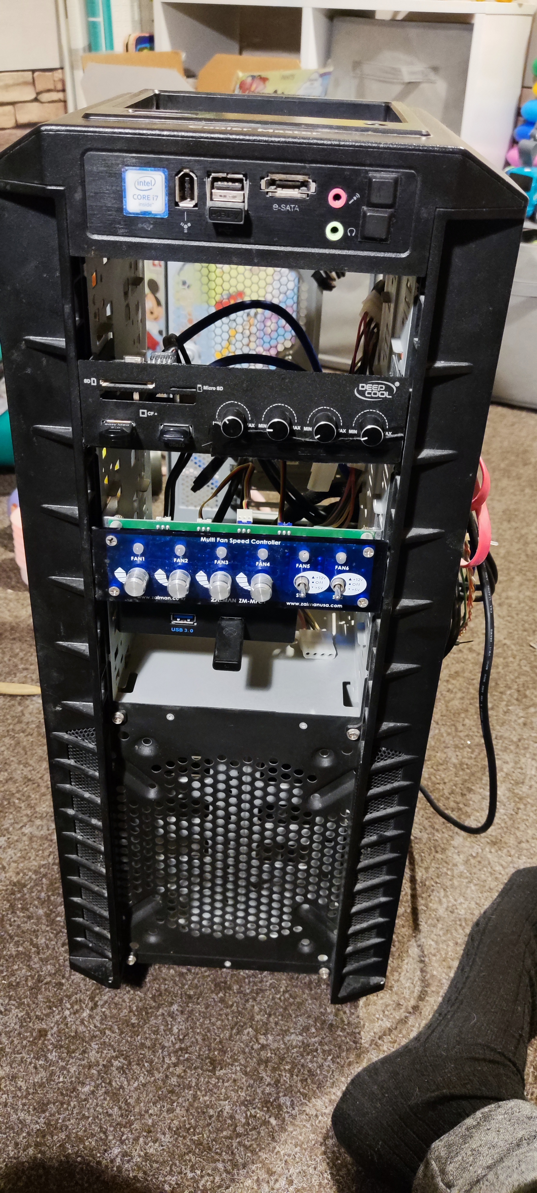 Добавлено спустя 1 минуту 38 секунд: вечером сфоткаю корпус получше со всех сторон, морду тоже всю кастамизировал, а то что на фото внутри, это корзина с другого корпуса) я с обратной стороны на нее 120ку повесил.