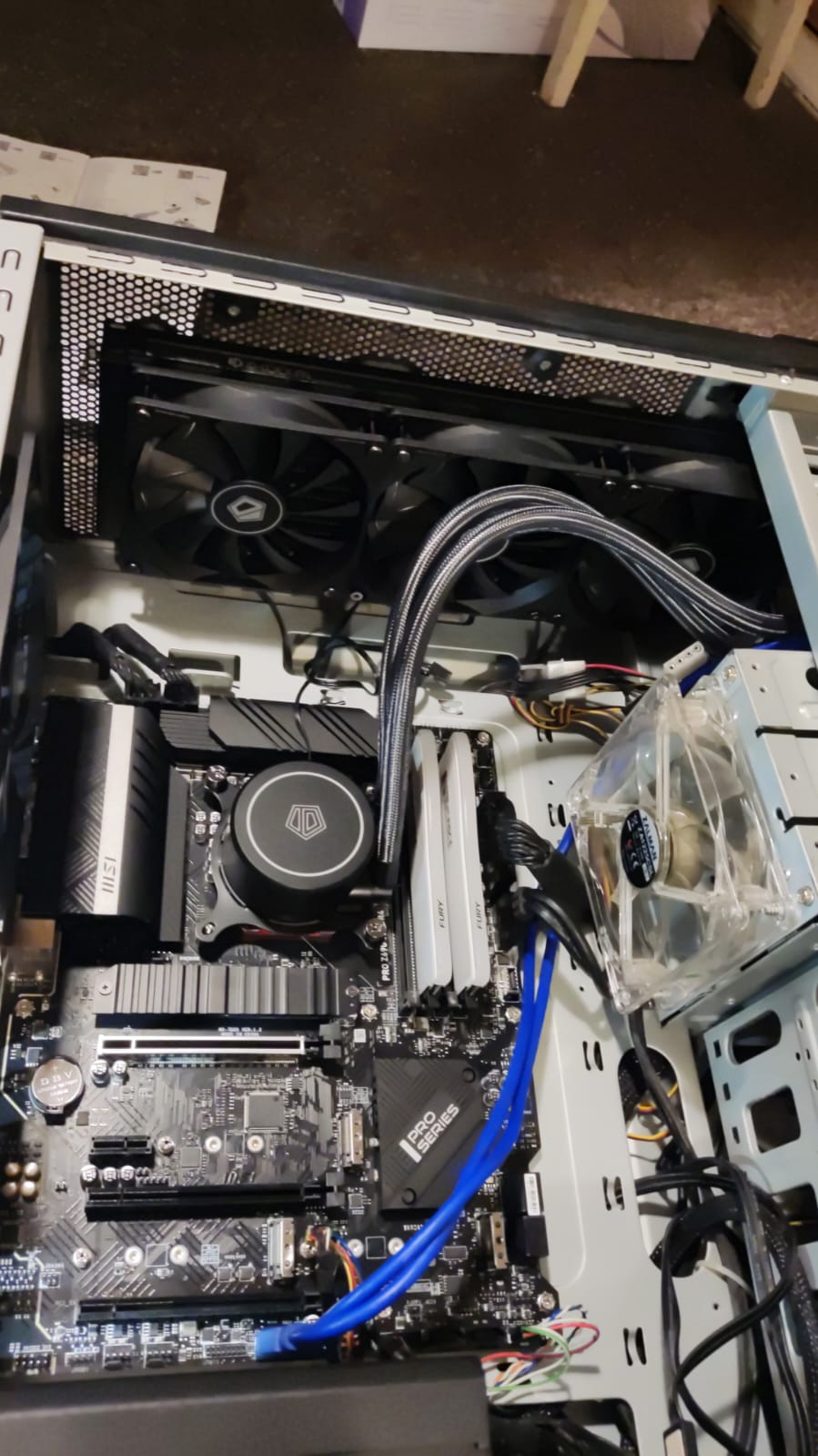 Все вопросы с размещением водянки на 360 мм решены... Мне нравится, то что получилось! Места сверху хватит и на более толстый радиатор... Может кто в блендере нарисует переходную плиту 360 на 420...