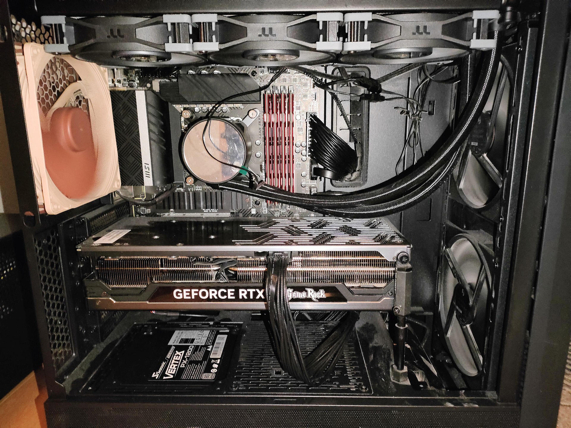 Ага, снизу, сверху и сбоку влезает до 420 радиатора. Ну если так, то да, температуры и на проце должны получше стать. Я себе с али заказал длинный райзер и боковое крепление, буду на бок вк ставить