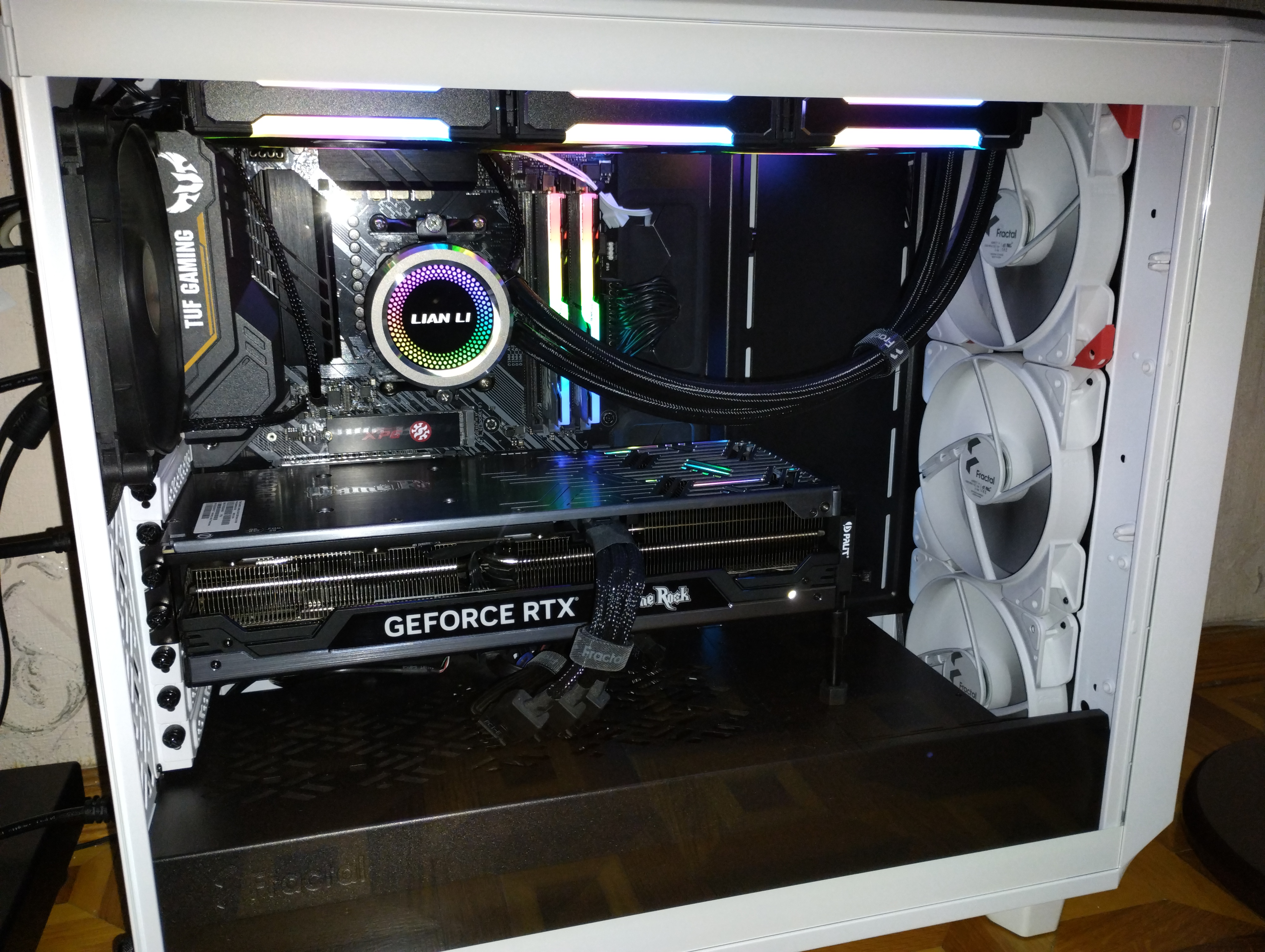 в простое на fractal meshify 2xl (серфинг,просмотр видео)13700кф после андервольта..около 40,максимум 50.память 36-37.видео 36~ хот спот 46~ .ссд м2 41-32 .Материнка от 32 до 39 по разным датчикам В играх получается цп максимум 70,видео до 87 хот спот (4070ти)и сама видео карта около 65-70.Память около 63-65 обе планки,материнка около 45-50,диски аналогично.Поэтому интересно подобное железо в этом корпус увидеть..каких разницы будут. кулеры 2 на вдвув спереди,один над видео картой на двув,и выдув,и арктик 420 выдув.