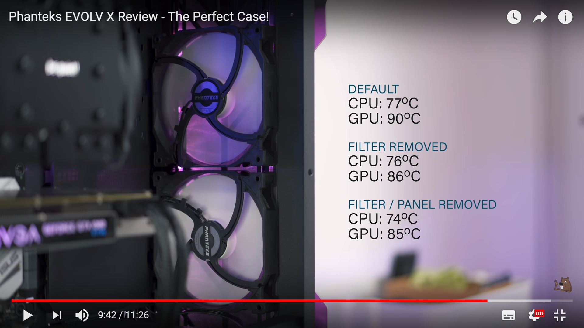 Спасибо за ответ. Это со всеми панелями и фильтрами? Вентили небось как реактивный двигатель шумят? У Jayz2cents в этом корпусе видяха на воде тоже дико перегревалась.