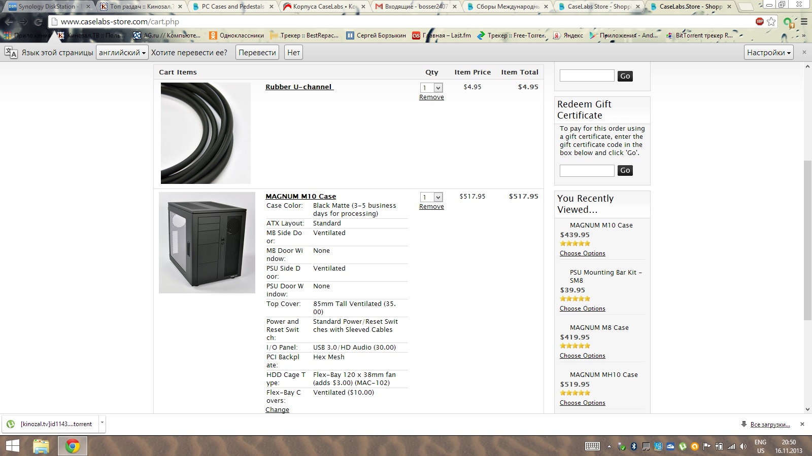 Ну вроде договорились на М10, сегодня буду оплачивать. Доставка 190, итого 712. Корпус поставляется только в собранном виде(пока не сильно представляю как попру с почты). По моим подсчетам gtx 780TI без проблем должна встать, не ошибаюсь? Кто получал скажите проблем с растамаживанием не было? Просто заказывал тут Synology 213+ на амазоне, упарили с документами(ups). По закону вроде как до 1000 а у них до 200. Да и 1000 могу перебрать. Как раз только выслали Hd-plex 5s~300 и ЕК~400.