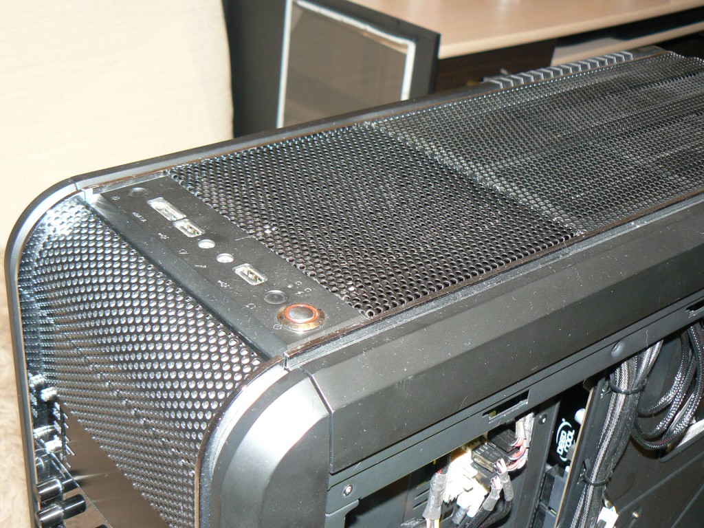 Завершил мод своего компа, а именно: - заменена кнопка включения питания на антивандальную с красной подсветкой, запитанна от индикатора активности жесткого диска; - в системе СВО (Н-80 + Н100) заменены радиаторы на медные 1х120 и 3х120, добавелн в контур резервуар; - порезан корпус: - сверху для установки радиатора 3х120; - сзади для установки радиатора 1х120 фитингами вниз; - спереди, для увеличения проходного сечения для вентилятора 140мм; - в поддоне, для умененьшения изгиба шлейфов сата при подключении к мат. плате. - порезана верхняя крышка (убран карман для подключения жесткого диска), чтобы разместить радиатор, отверстие закрыто сеткой очень похожей на родную. сетка подошла от гриля для динамика 35 гдн 1-8;