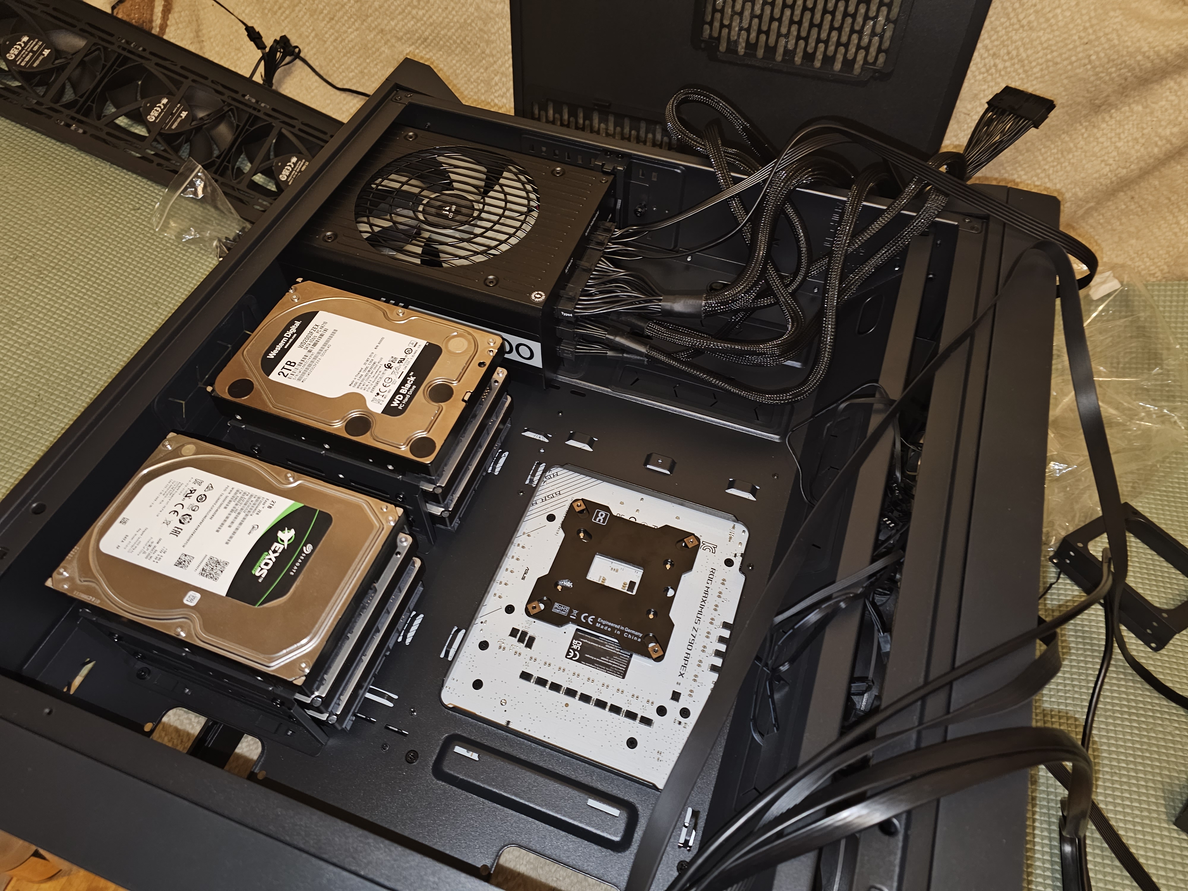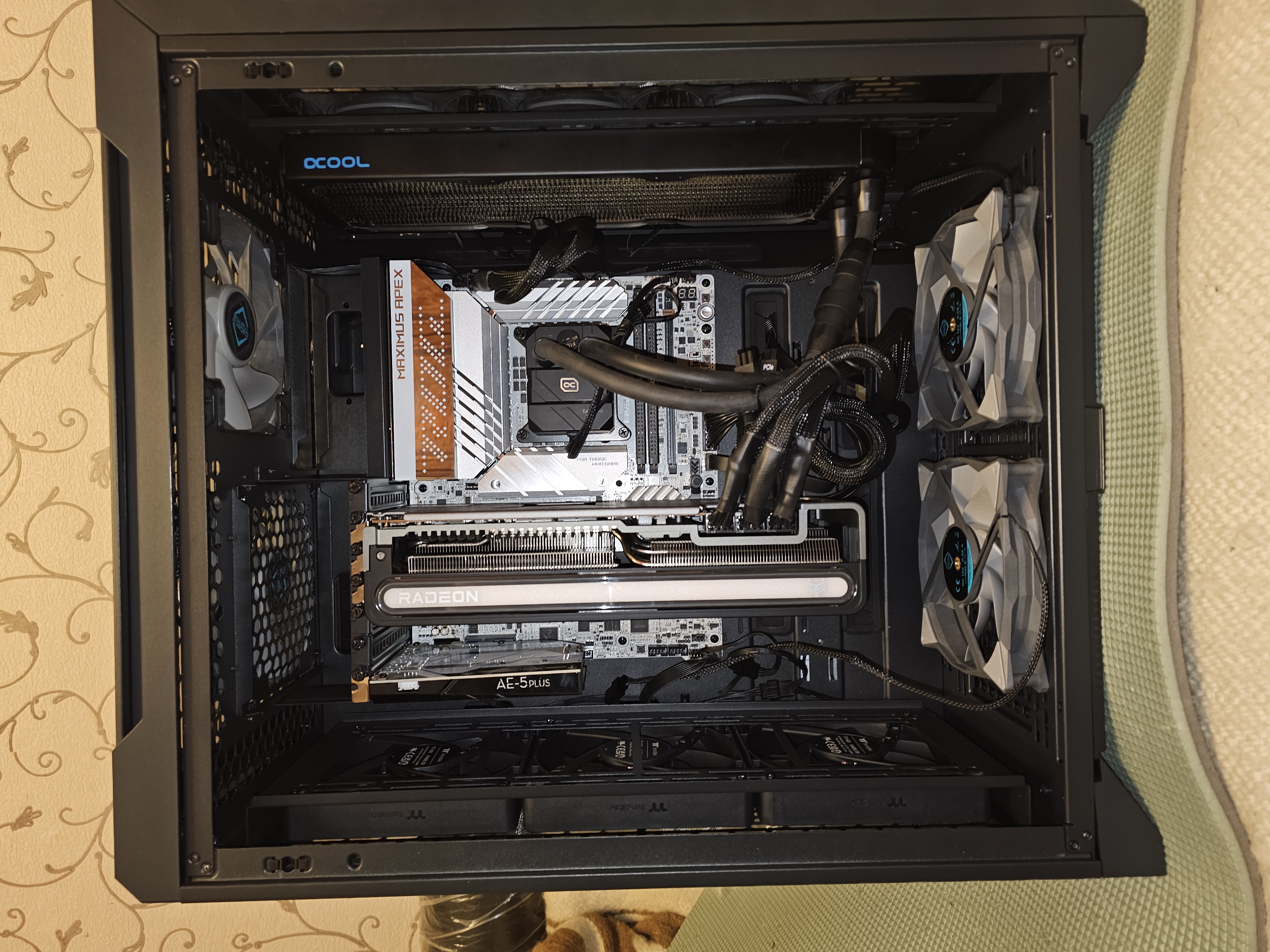 Из jonsbo d500 (когда покупал его, только появился, такого оверпрайса не было, 20к стоил, и спереди и сверху пуш-пул влез и место ещё много было), до него был phanteks elvo x - отличное качество, но для кастома тесно, продуваемость так себе.