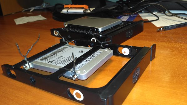 В итоге вырезал сам электролобзиком, а акриловое стекло вырезали лазером. Прибрался недавно в корпусе, готовлю к новому железу. Придумал крепление ssd. Может идея не новая, но вдруг кому полезно будет