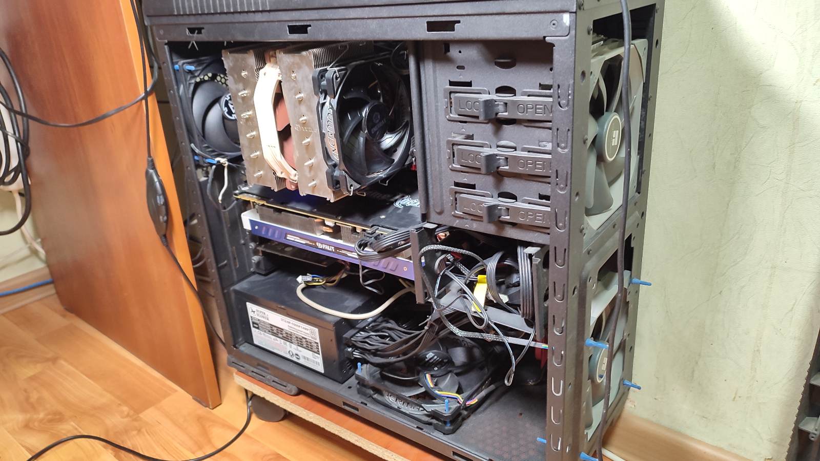А должны быть???? Тем более мне нужно подумать как реорганизовать циркуляцию воздуха в корпусе, где корзина является помехой.... Размеры видеокарты препятствует воздушному потоку, добираться до совсем не холодного r7 5800X. Как-то так!