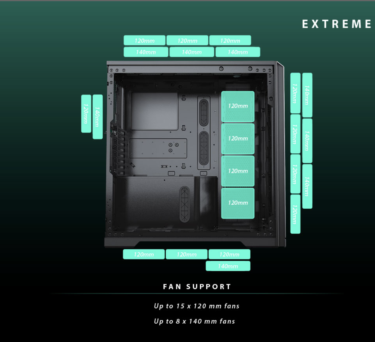 3x140 с посадочными под 120! ... если Вы посмотрите на переднюю панель, то увидите, что у 719/PRO2 установка вентиляторов спереди осуществляется не на рельсы, как у базы evolv X, а на выступах/ушках. 3х140 с посадочными под 140 сядут без проблем