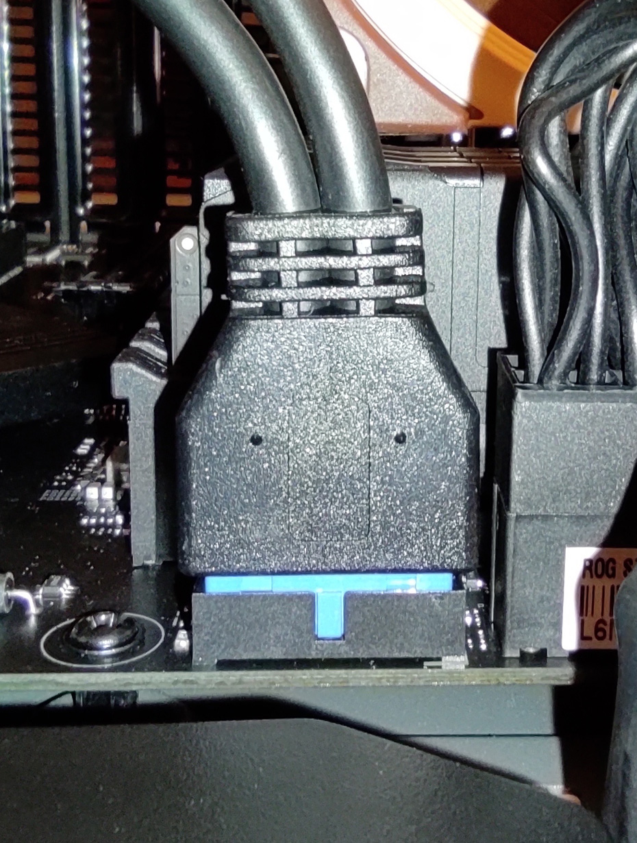 Подключаю USB порты фронтальной панели P600S к плате ROG STRIX B550-F GAMING. На панели USB 3.0, на плате USB 3.2 Gen 1. Разъёмы панели и мат. платы 19 pin одного типоразмера. Совместимы мы ли в данном случае версии USB? Теоретически понятно, что при таком подключении 10 Гбит/с на морде не получить. Смущает, что разъём как будто не входит полностью… Адекватно ли такое подключение?