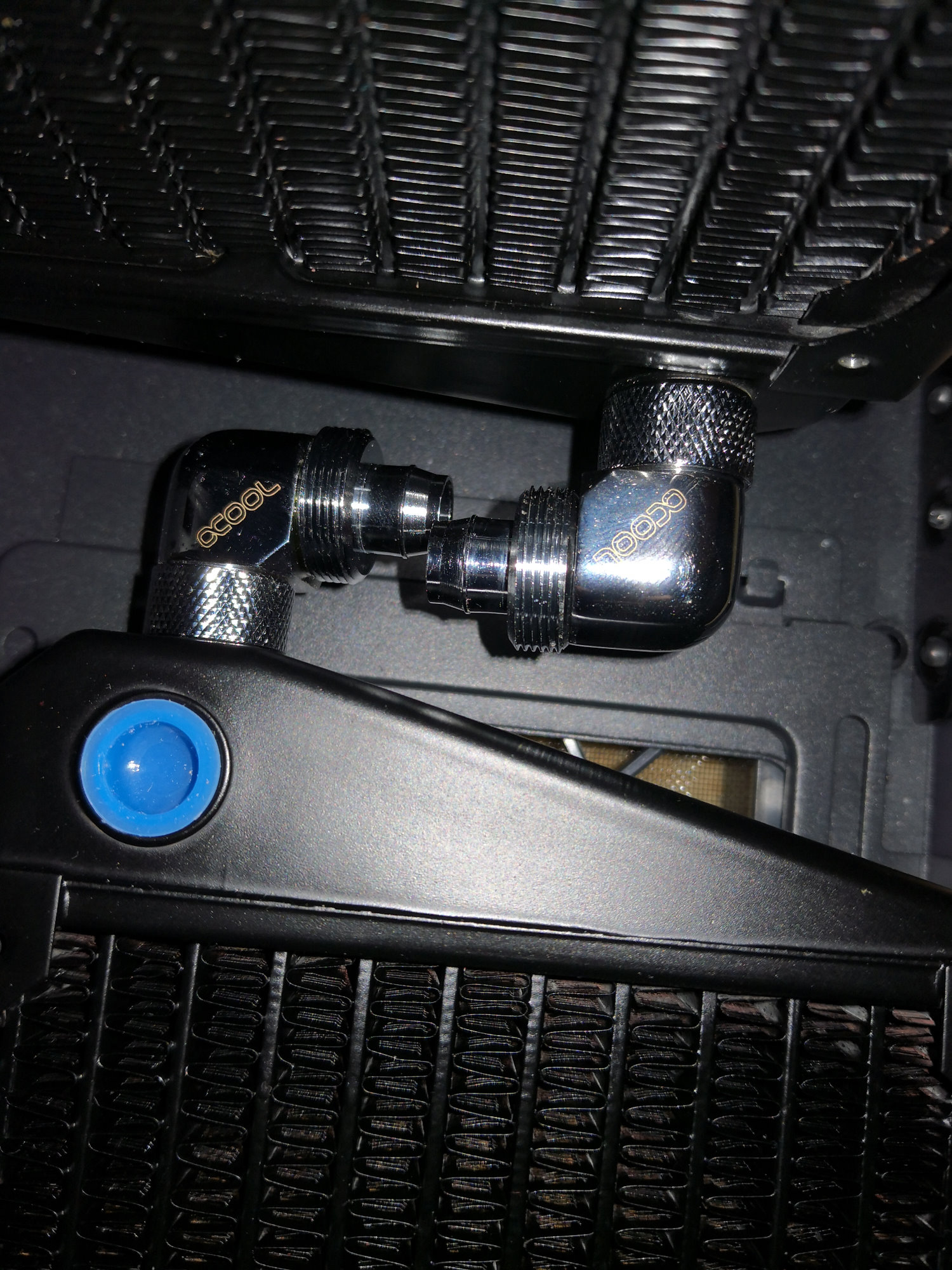 В общем, что не получилось у меня в Pro 2. Хотел поставить сверху 360 и спереди 420, все X-Flow, и соединить их уголками. Если сверху идеально встаёт, есть и соосность и расстояние для шланга, то вот внизу с расчётами промахнулся так прилично. И соосности немного не хватает, и сами уголки впритык. Пока хз, что делать.