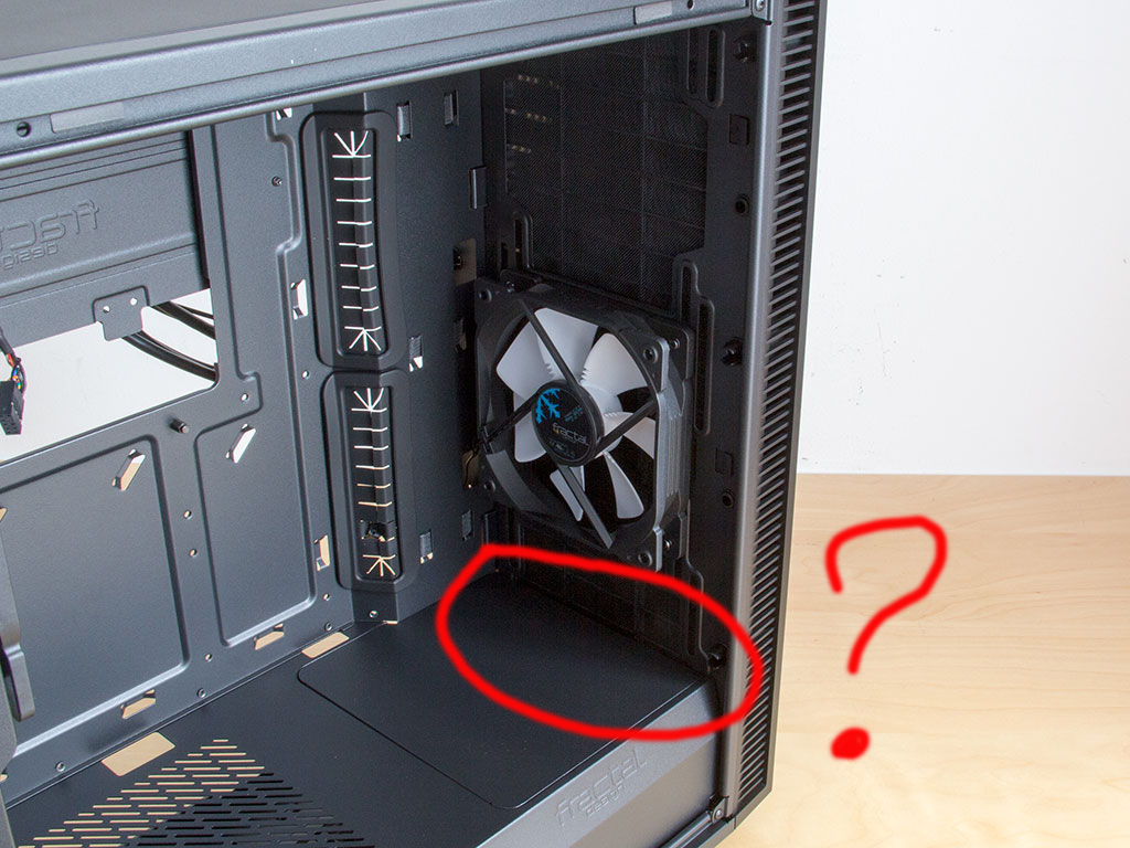 там много чего указано, сколько фоток ни смотрел, везде этого вентилятора нет, я конечно понимаю, что эра терабайтных SSD скоро наступит, но для меня главный вопрос охлаждения HDD в данном корпусе стоит, по умолчанию корзина не обдувается, в Define R6 конечно такой проблемы не вижу, но хочу все-таки компактный корпус. как я понял нужно снять нижний металлический отсек и только тогда можно будет поставить 120мм вентилятор: