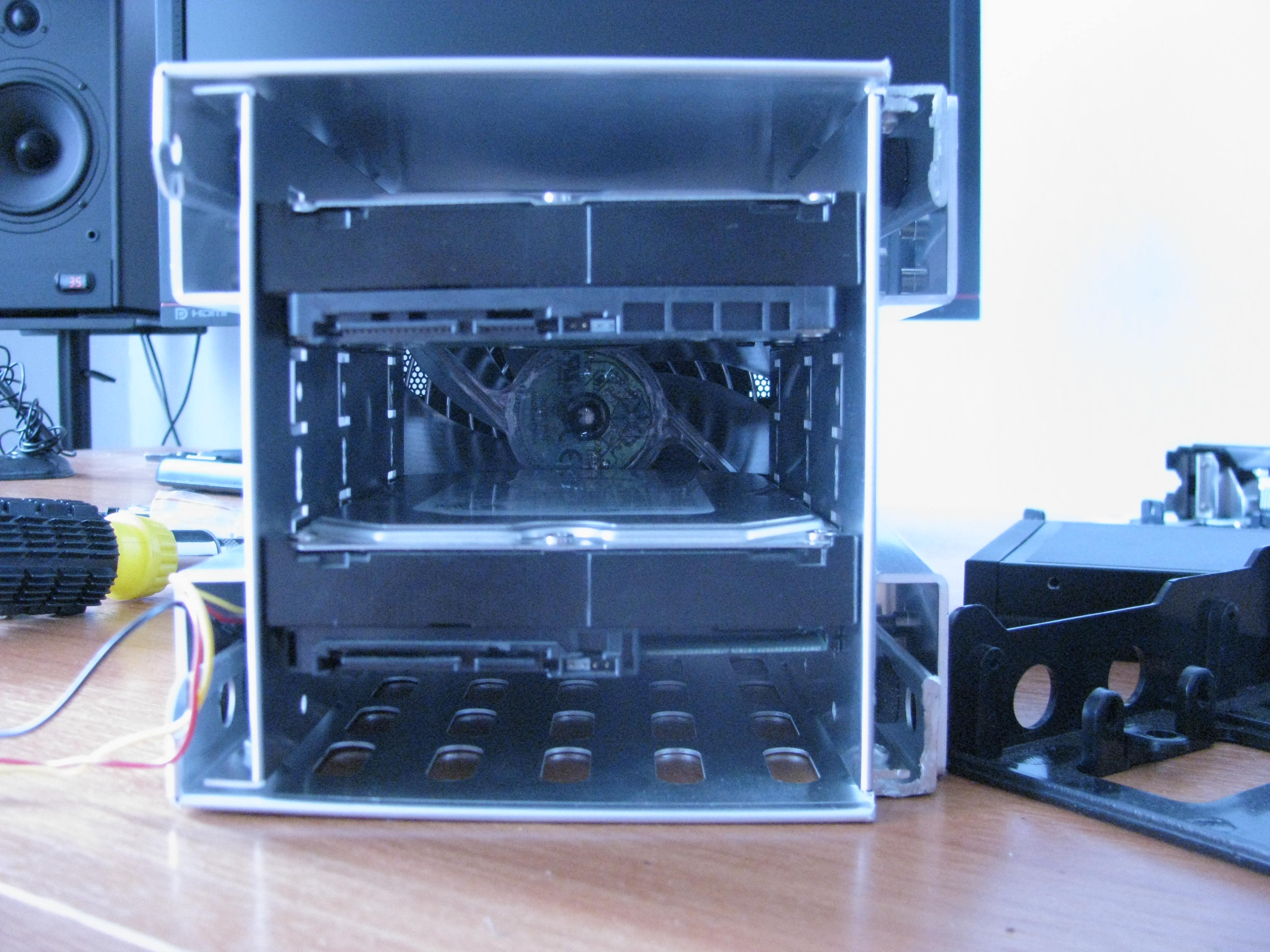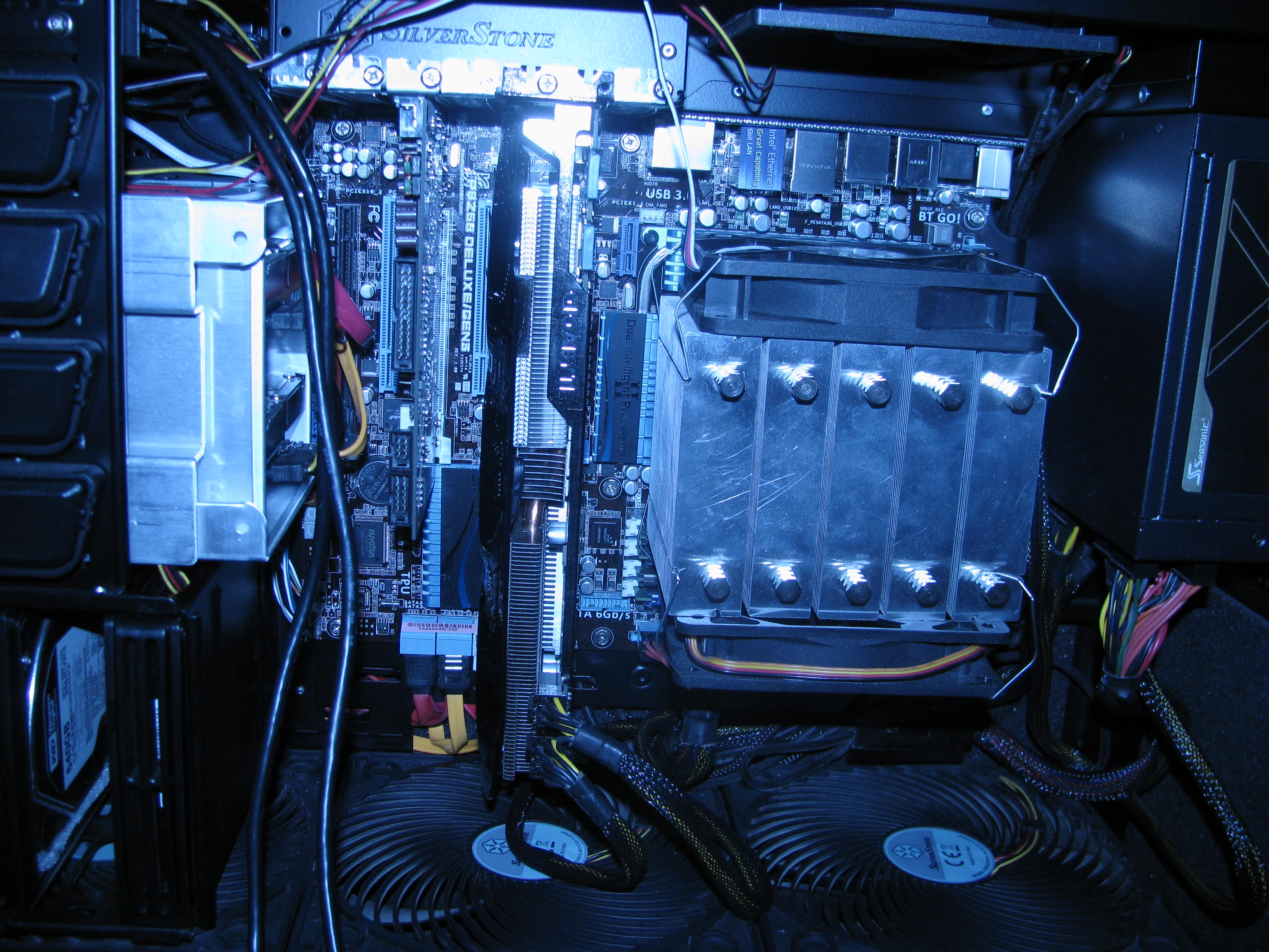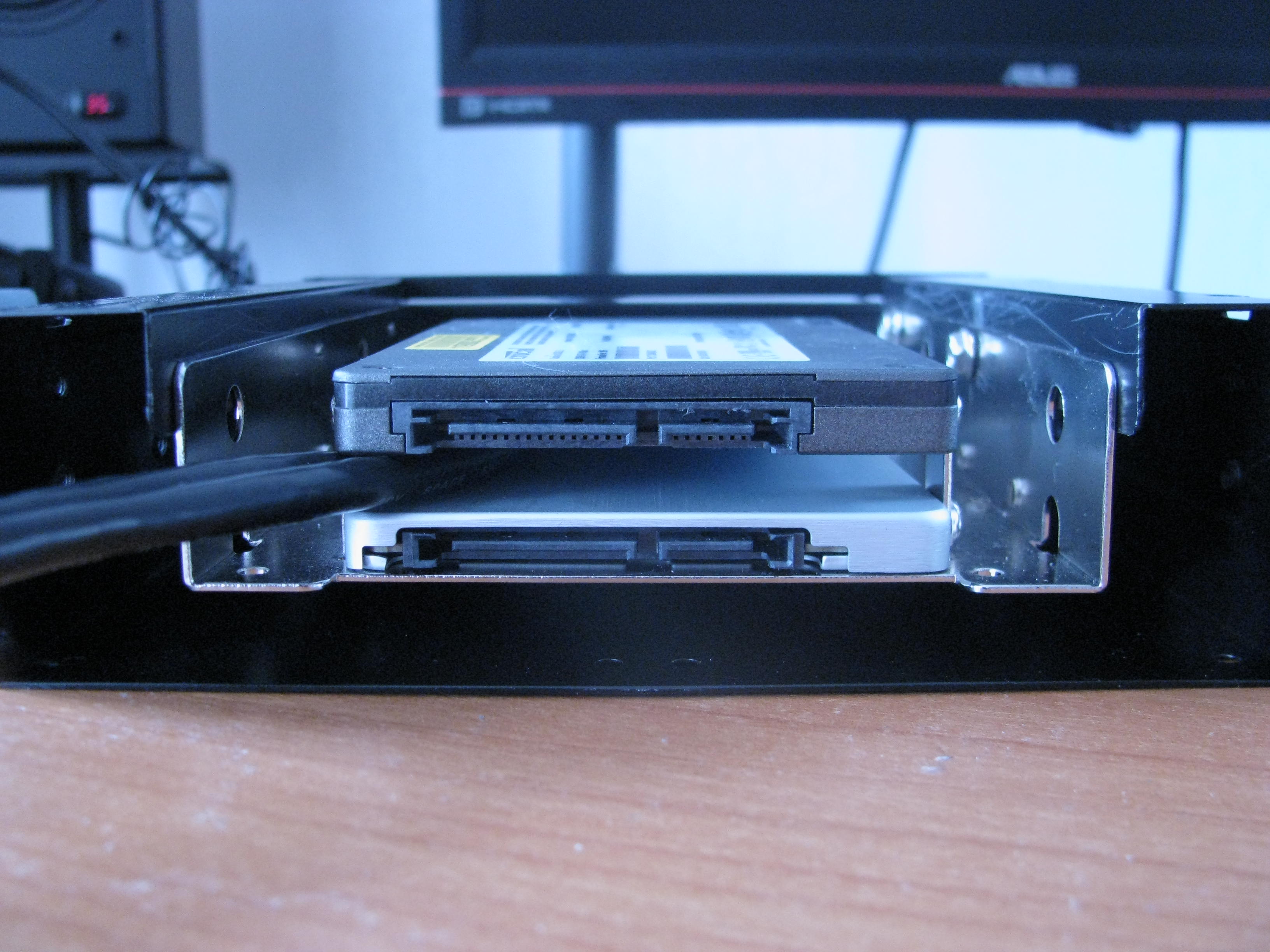 Зачем эта дрянь в 5.25 дерьмовом отсеке если внизу в корзине есть место? ССД крепятся на задней стенке. С кабелями вообще ахтунг.