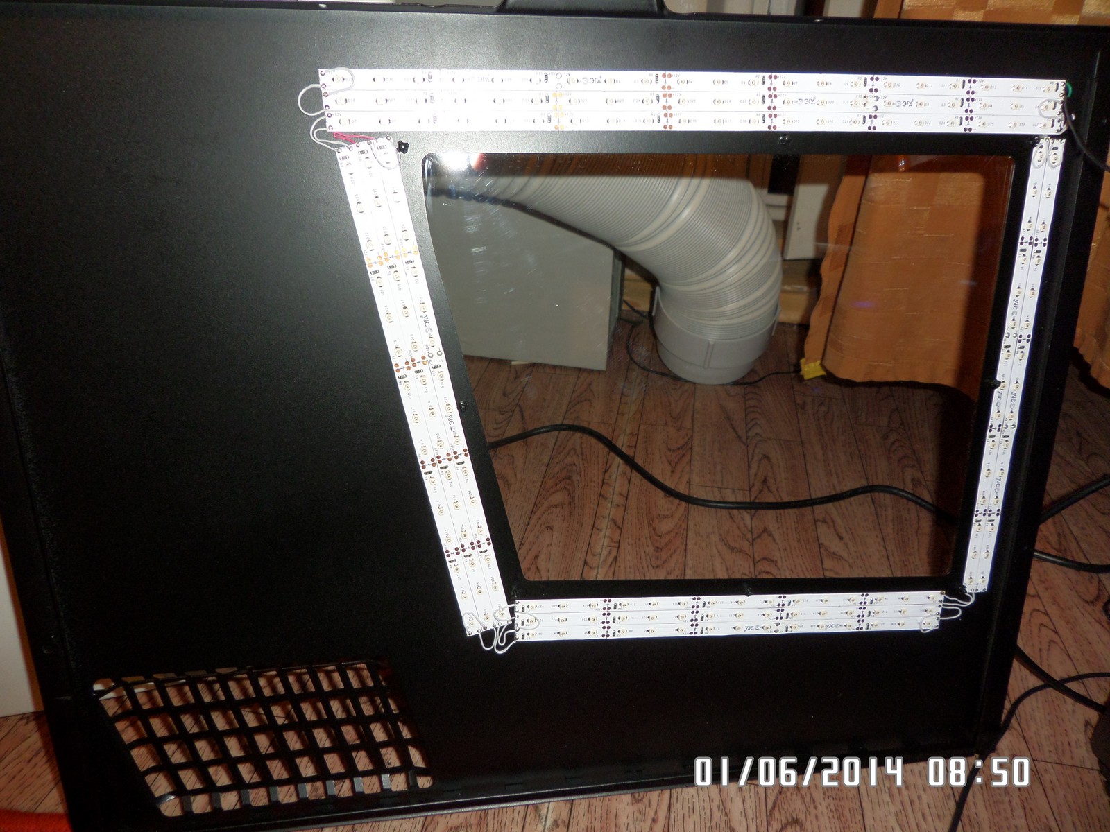 Поставил, вентиляторы снимать не пришлось, даже отверстия для проводов не перекрывает. Не понятно, почему Е-АТХ невключили в список поддерживаемых форматов.