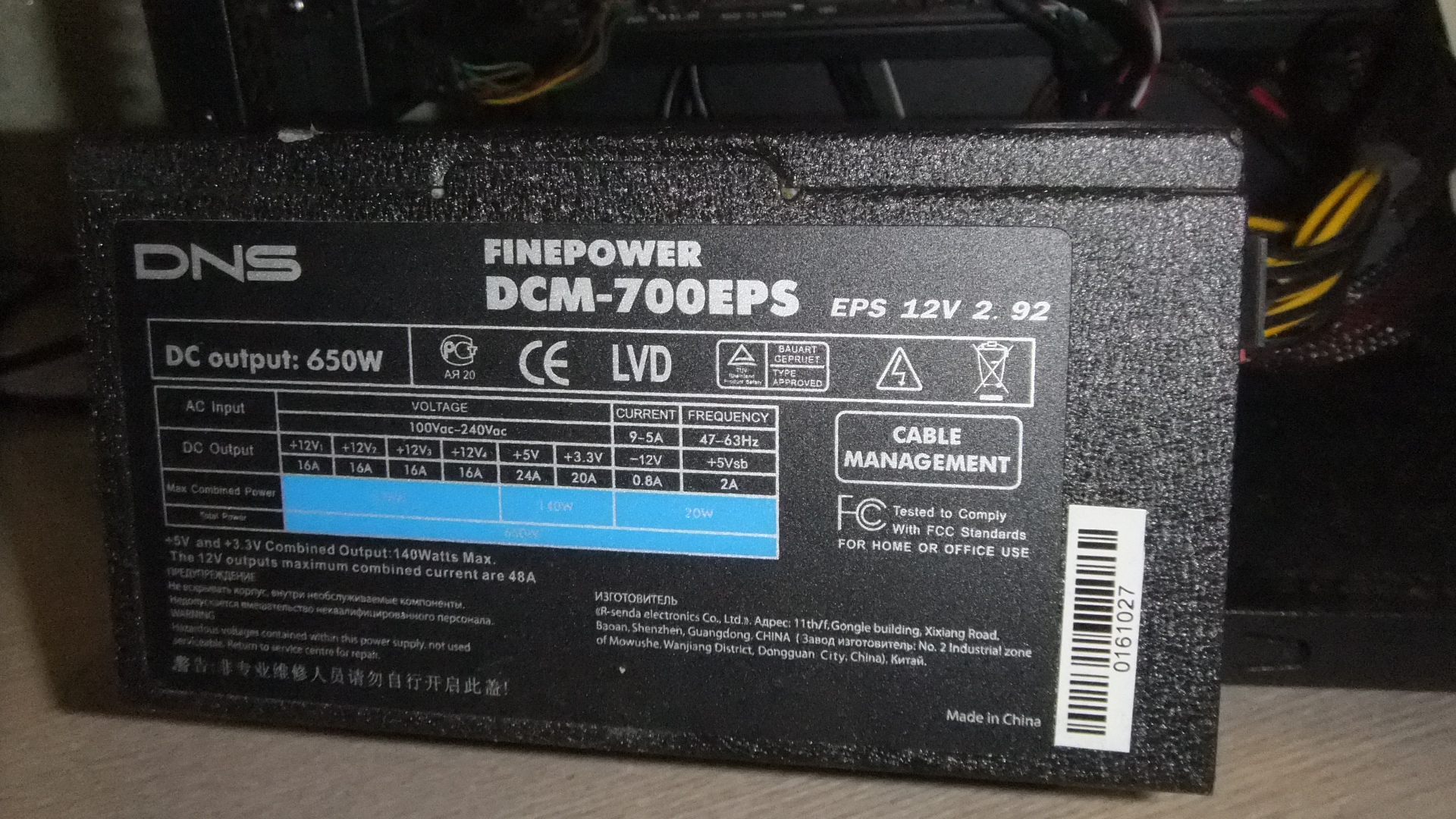 Ну да, OEM R-Senda, так и написано на этикетке. Хорошо: раздельная стабилизация на МУ. Плохо: при 700 Вт паспортной мощности только 576 Вт по 12В (т.е. фактически это 600-ваттник). Еще и с разбивкой на мелкие виртуальные линии, что может быть плохо для запитывания мощных видеокарт. Всего 2А по дежурке, при том, что нормальные 650-700-ваттники имеют по ней 2.5-3.5А. Нет, $120 я за такой БП не дам. За эти деньги можно взять 650-ваттный 80+ Gold на DC-DC преобразователях с монорельсом 12В. И он будет мощнее Вашего по своей основной линии 12В. Вот: http://www.oldi.ru/catalog/element/0265354/ - за $100 модульность, DC-DC преобразователи, 648 Вт по 12В одной линией, 80+ Gold, адекватная акустика и известный производитель (CWT), от которого хотя бы понятно, что ожидать. А за $115-120 можно взять еще и с полной модульностью и всеми японскими конденсаторами: http://www.citilink.ru/catalog/computer ... ly/892384/ (CWT CSH)