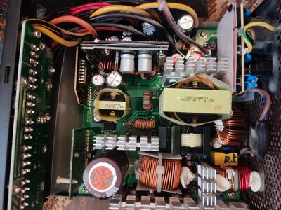 помогите определить треск все потыкал, звук не меняется от нагрузки звук никак не зависит, похож на тихое искрение, будто кто-то сварку делает вдали, в общем монотонные 50гц блок питания новый chieftec gpb 500w, нагрузка на блок не более 300вт, все трансформаторы и катушки пролил лаком