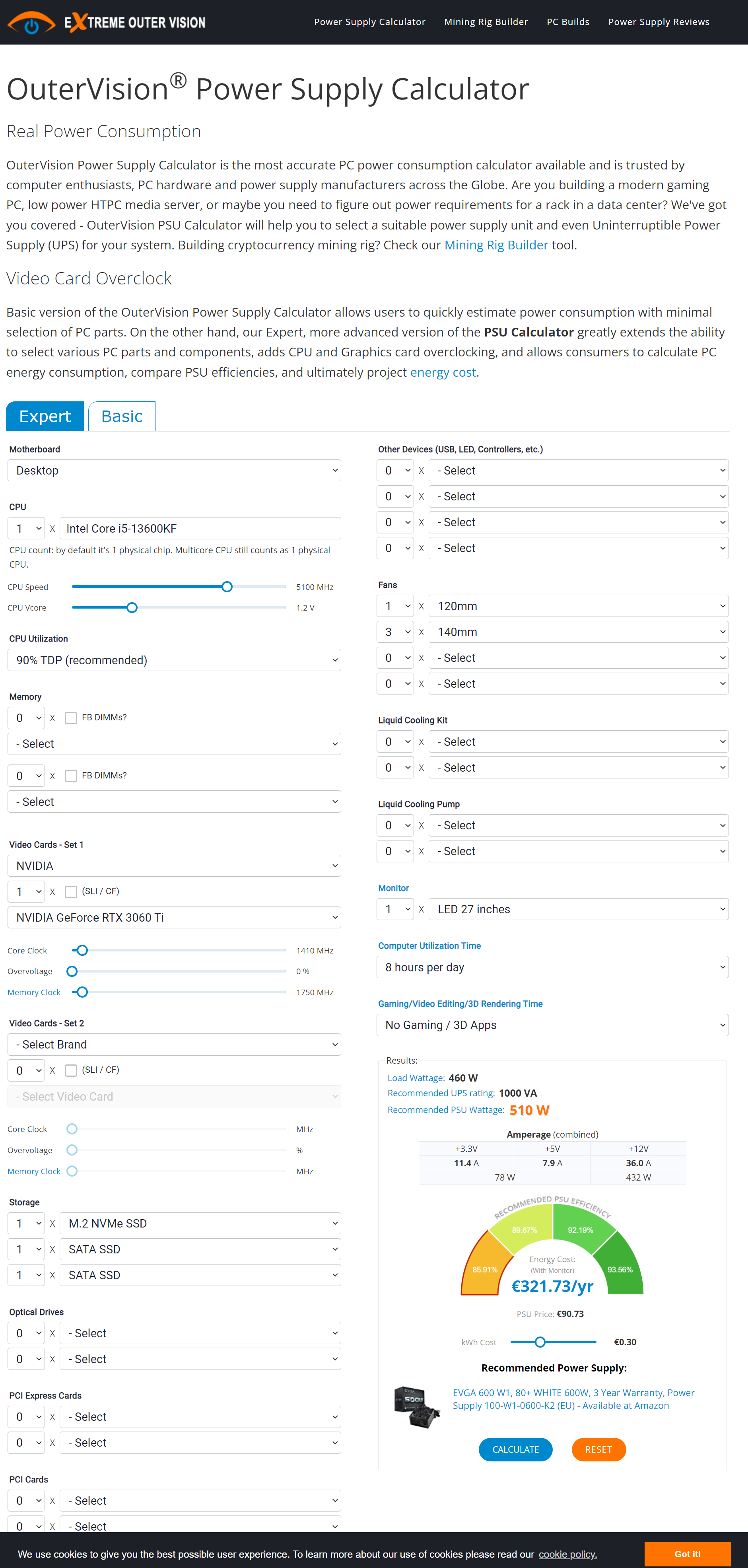 то есть SPT-1000-II будет "впритык" по мощности, в требовательных играх может отключаться. защита от перегрузки. для 13600KF +3060Ti этого ИБП с запасом.