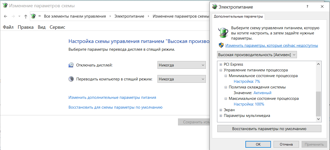 после подключения к BX650CI? для чего вообще нужен план "экономия энергии"? что изменит в данном случае? ничего.. это для ноутбуков экономить заряд батареи. в "десктопном" ставишь "высокая производительность" и настраиваешь в дополнительных параметрах питания - минимальное состояние процессора. можно 10%, можно меньше. у меня 7%.