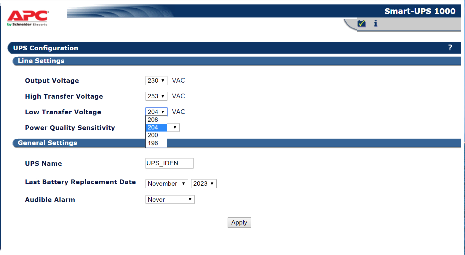 для SMT такие же значения насколько помню. если вас так "беспокоит" низкое напряжение на выходе ИБП. возьмите стабилизатор. включите перед ИБП. "городьба" конечно.