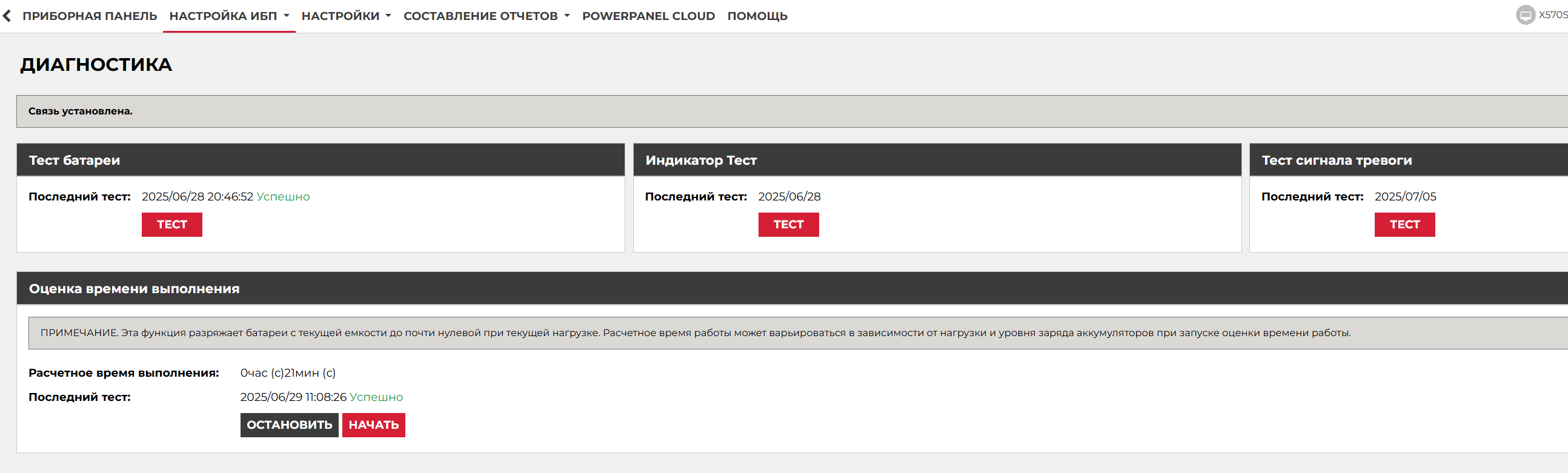 как вариант, только что-то мне подсказывает что ego0550 уже утомился от бесконечных зарядов, разрядов, перезарядов. в ПО есть "кнопка" калибровка? просто по PR1000ELCD и настройке уже написано 5-6 стр. у мне не хватает памяти вспомнить в каком именно посте и на какой странице обсуждалось, бегло поискал на предыдущих не увидел, проверка состояния батарей есть, тоже самое что и Self-test в PowerChute для APC.