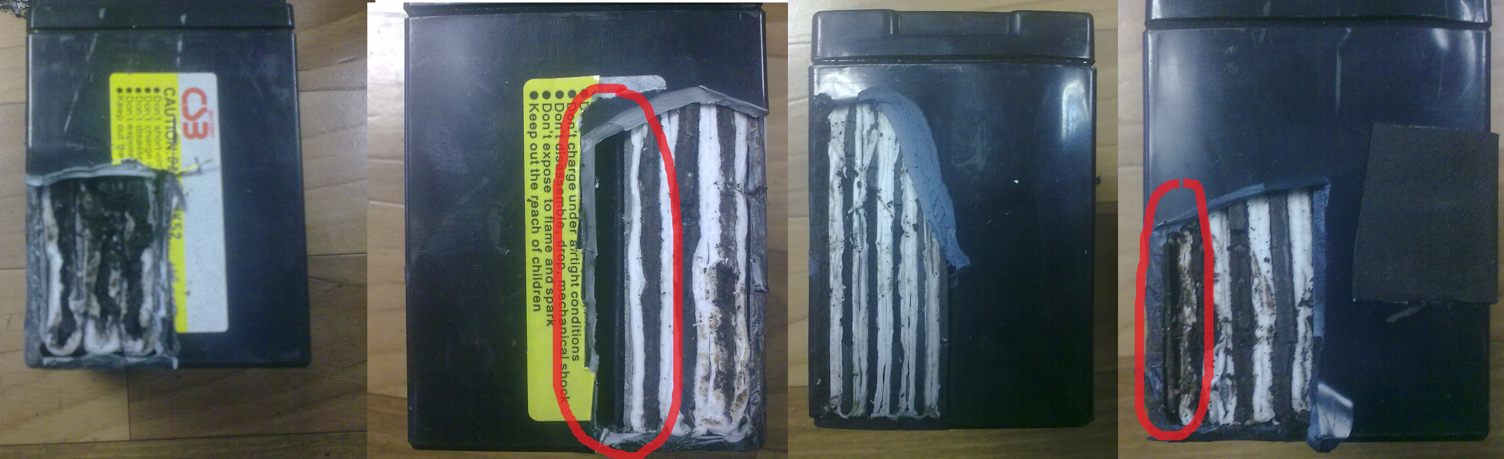 Что значит "гарантия 1 год"? Эта гарантия - лишь срок, в течение которого проявившиеся по вине производителя дефекты являются основанием для возврата, при отсутствии нарушений правил эксплуатации. И там такая куча нюансов, что даже лишь самостоятельно подключив АКБ вы уже гарантии лишаетесь. Если срок самой службы - то при каком профиле нагрузки, с каким графиком циклов заряда/разряда? При желании ее и за полминуты можно ушатать. JustACat Я их с полсотни порезал, статейку на ПС делал - видел и недозаполненные ячейки, в одной были полости внутри, в другой - снаружи. Это не криминал, т. к. сам типогабарит заточен под 7-7,2-7,5-8-9 Ач, поэтому 7,2Ач иногда получают отрезанием одной пары анод-катод от 9Ач. Вот например фотомонтаж: