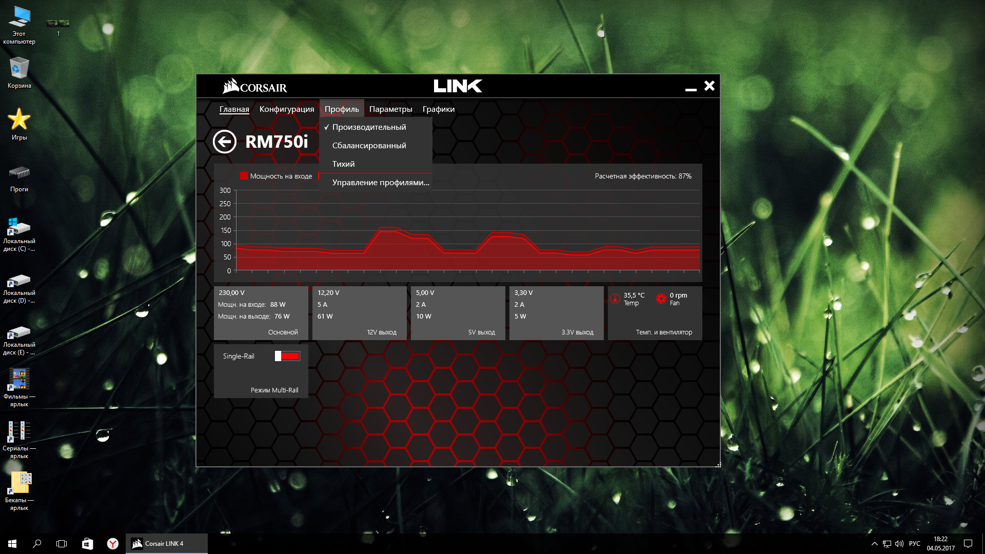 он был включен, я поставил утилиту и выключил его, посоветовали на другом форуме, но я так и не понял за что он отвечает, можете пояснить? бп подключил проводом, питание карты разнес по двум линиям, не понятно только какой режим ставить в корсар линк сбалансированный или производительный? линкс с фурмарком значит запускать, а файр страйк ультра для этого не подходит?