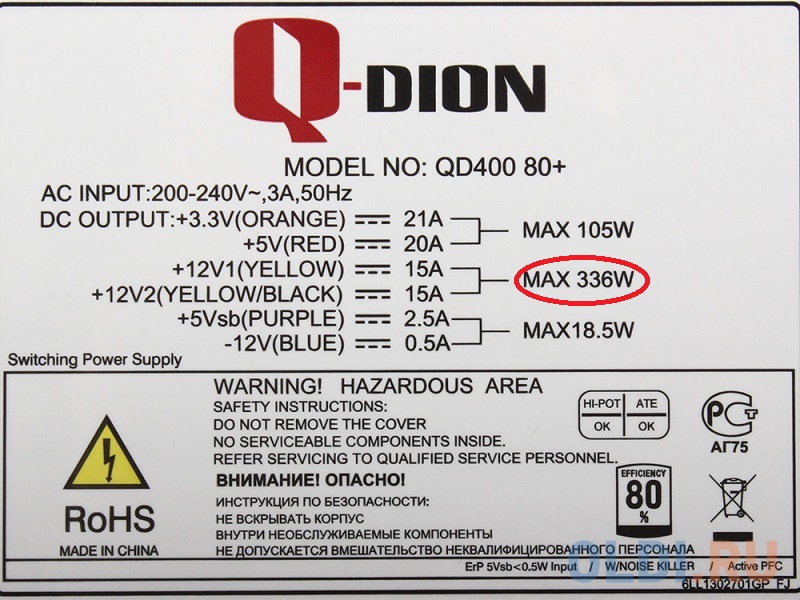 Почитайте еще раз матчасть по БП, особенно по поводу супервайзеров. А пока у Вас нет более чем 180-ваттных отдельных потребителей - считайте, что у QD400 80+ единая линия 12В на 336 Вт (336/12 = 28А). https://s8.hostingkartinok.com/uploads/ ... a717c2.jpg - обведенное красным видите?