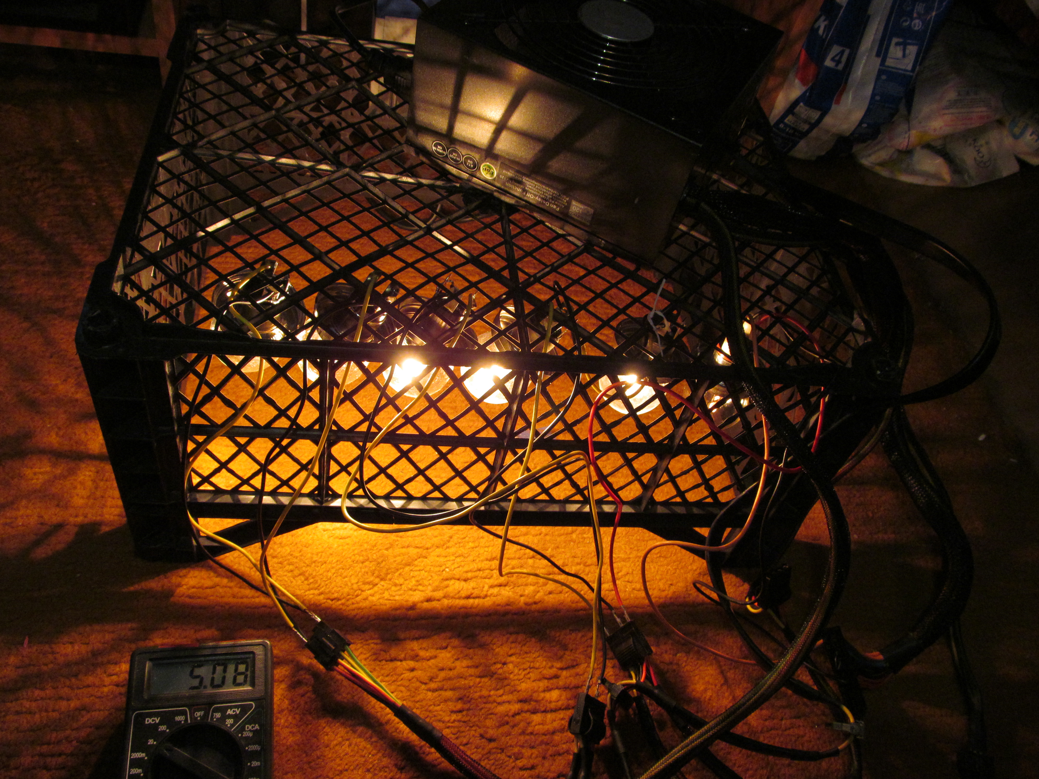 Немножко неправильно написал ,нагружал дежурку лампой 12 вольт 50 ватт - это где то 1 - 2 ампера , этого достаточно для проверки дежурки . Сегодня производил испытания ( вопросов по работе к блоку питания нет) Нагрузил автомобильными лампами : 12 вольтовую линию 300 ватт ( распределил равномерно нагрузку по всем 4ём линиям) 5 вольтовую линию 50 ватт 3,3 вольовую линию 50 ватт Замкнул зелёную с чёрным , блок питания запустился и работал без замечаний . Напряжения при загрузке (Жёлтый 12,07 вольт ,красный 5,08 вольт, оранжевый 3,32 вольта , синий -12,2 вольта, сиреневый 5,06 вольта , серый 5,06 вольта . Теперь вопрос , как совместить материнку с блоком питания ( кто сталкивался с несовместимостью ?) .