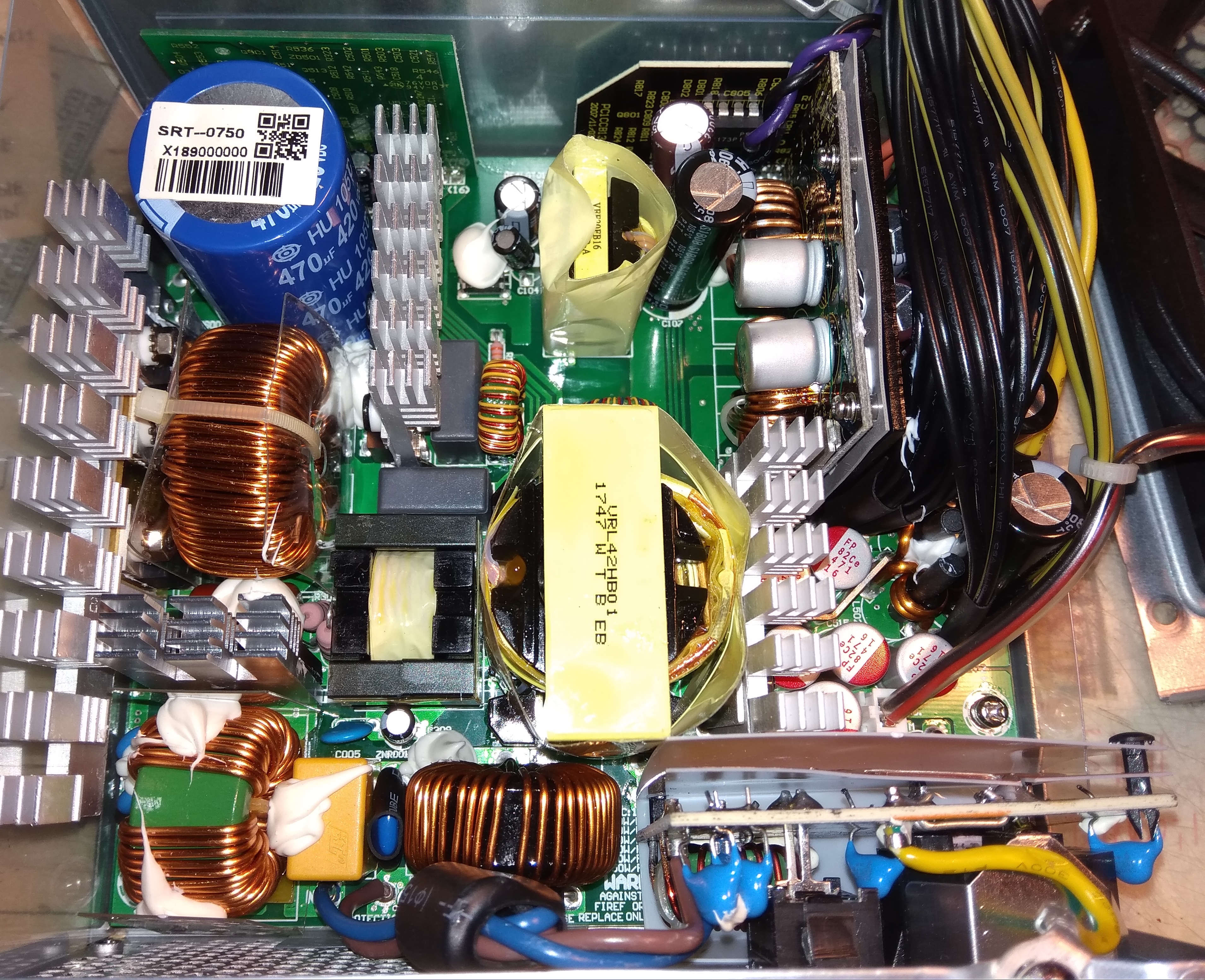 Где-то полгода назад купил (да-да, накопил и купил ) себе SSP-750RT. Решил черкануть, что-то вроде отзыва наверное получится. До этого всегда FSP были. Что могу сказать.... Ну во-первых, это полнейшая тишина ! Блин, я в шоке, если честно, просто настолько тихий этот питальник. Когда компьютер в простое, я теперь слышу как тарахтит мой hdd seagate, закрытый в контейнере DEEPCOOL Icedisk 100 в серверном корпусе из 1мм стали с антивибрационным крепежом. Абалдеть. Только в играх он немного повышает обороты и уже кулер питальника становится слышно, если прям прислушаться. У меня во всех моих FSP-шниках в глубоком простое системы шум от вентиляторов был гораздо больше, чем от seasonic`а в нагрузке. Нельзя никак не отметить длинные провода. Это отдельная тема. Вот к линиям +12В, подходят толстые и добротные провода. Например для питания видеокарточки там вообще четыре коннектора по 6+2 и для питания процессорной части матерниской платы одна колодка 8pin и две колодки 4+4pin . Такое ощущение, будто этот блок питания под многочисленные апгрейды системы и похоже переживёт любую сборку, т.к. есть вообще любые коннекторы под любой конфиг. Пины в разъёмах блока похоже что позолоченные, если оно так, то я вот этого уж точно не ожидал от блока питания в корпусе из простой оцинковки. Толщина металла тоже конечно порадовала - 0.8мм. Не скупились даже на таком моменте, похвально! Ещё нельзя не отметить стабильность напряжения, если к примеру смотреть какой-нибудь утилитой. Значения напряжений стоят как вкопанные, пока что под нагрузкой замечено отклонение на сотые доли вольта. Вообще похоже 750RT (и похоже что у 650RT) есть две ревизии блоков. Одна B1W, вторая B2W (наверное более поздняя). Мне досталась вторая ревизия. Стало интересно, чем отличаются, вскрыл корпус. Естественно детальный разбор блока не планировался, гарантия всё-таки. Визуально отличия таковы (суждение о первой ревизии чисто по фоткам из обзоров из инета) - если в первой ревизии везде стоят кондесаторы Nippon Chemi-Con, те самые коричневые бочонки, то во второй ревизии - там уже сборная солянка из Rubycon, Nippon Chemi-Con и основной высоковольтный кондесатор фирмы Hitachi. В принципе, я не считаю это чем то плохим, ИМХО. Ну и похоже что кулер во второй ревизии отличается от первой, у меня стоит ADDA 1212MB-A70GL, а первой ревизии 1212HB-A70GL, то есть судя из даташитов на эту серию кулеров, отличаются максимальным rpm, но оба на двух шарикоподшипниках. А так больше никаких отличий визуальных я не нашёл. Единственное ,в первой ревизии похоже что корпус то-ли крашен в серый цвет, то ли металл кажется на фотках таким, но по крайней мере у меня корпус прям отштампован из хардкорной оцинковки, без всякой доп.обработки . То, что провода не отстёгиваются - да вообще пофиг и с точки зрения электрика, считаю, что чем меньше разъёмных соединений, тем лучше - нет потерь напряжения и греться нечему. В моём мега-просторном серверном корпусе никакой кабэл-мэнэджмэнт ненужен и задаром и в будущем тоже. Ну и напоследок отмечу добротный вес, ближе к 2кг, как у старого доброго FSP .