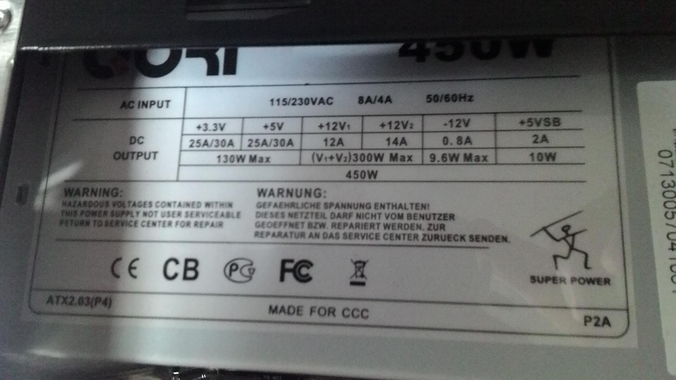 Это типовой конфиг, потребление смотрите по вложению в шапку темы, Ваша строка таблицы - 2-я. БП отдает максимум 360 Вт по 12В. Насколько качественно он это делает в возрасте 9 лет - никто без мультиметра и осциллографа, а также вскрытия и осмотра состояния конденсаторов, не знает. Вообще, конденсаторы в БП лучше в таком возрасте менять не глядя на аналогичные новые (задача под силу любому радиолюбителю с паяльником).