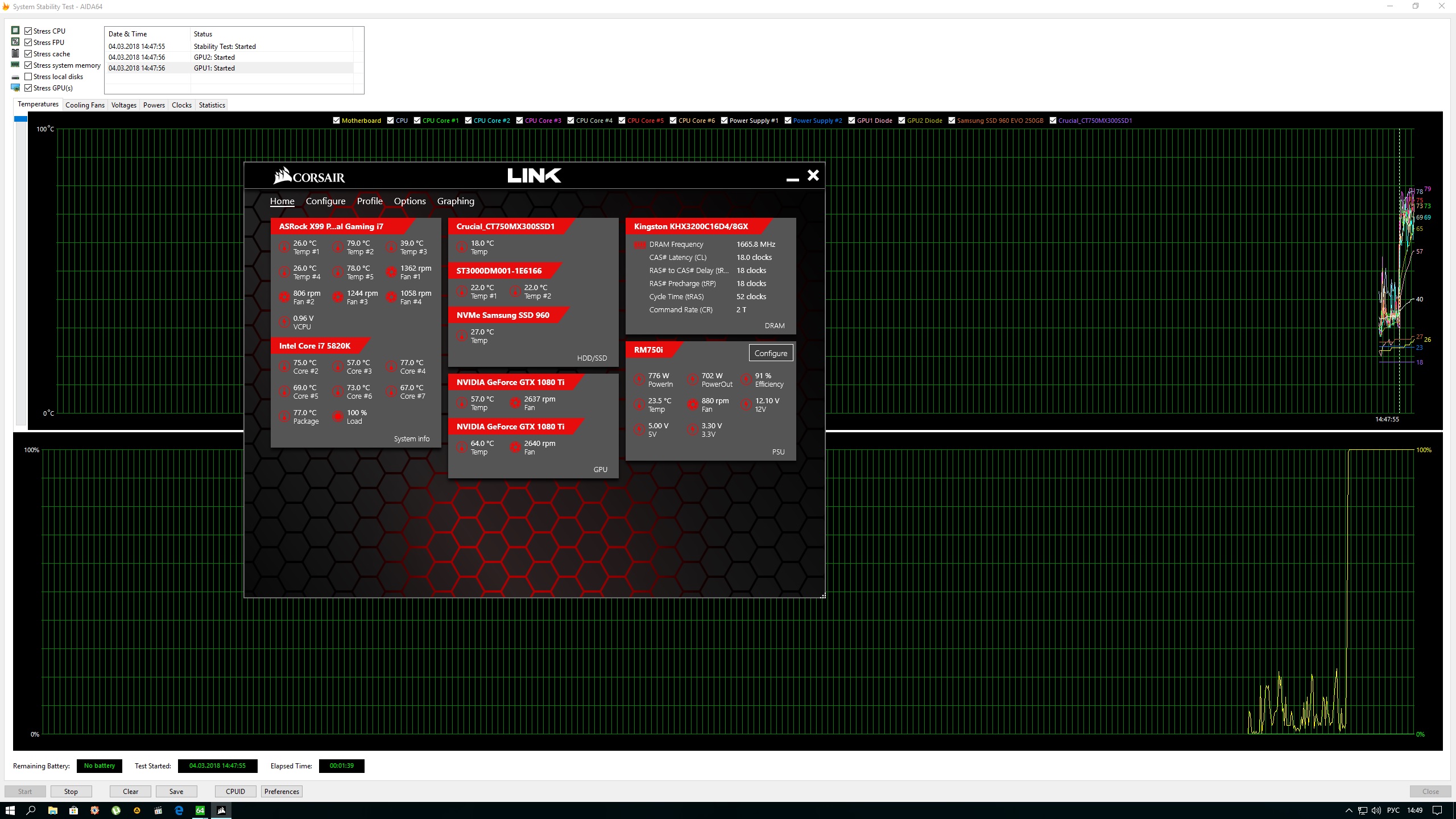 Master2007 я с вами даже не спорю, не двойной стресс-тест, зато показывает примерно то самое потребление, которое и будет при игре. А если учесть, что многие игры не умеют SLI, а также то, что 8700K в разгоне даже 5000 ГГц при 1,405 (в среднем именно столько надо для успешного старта) всё-таки потребляет меньше, чем мой 5820k @4500-4700, то, ИМХО, голдового 800-850W тут хватит за глаза