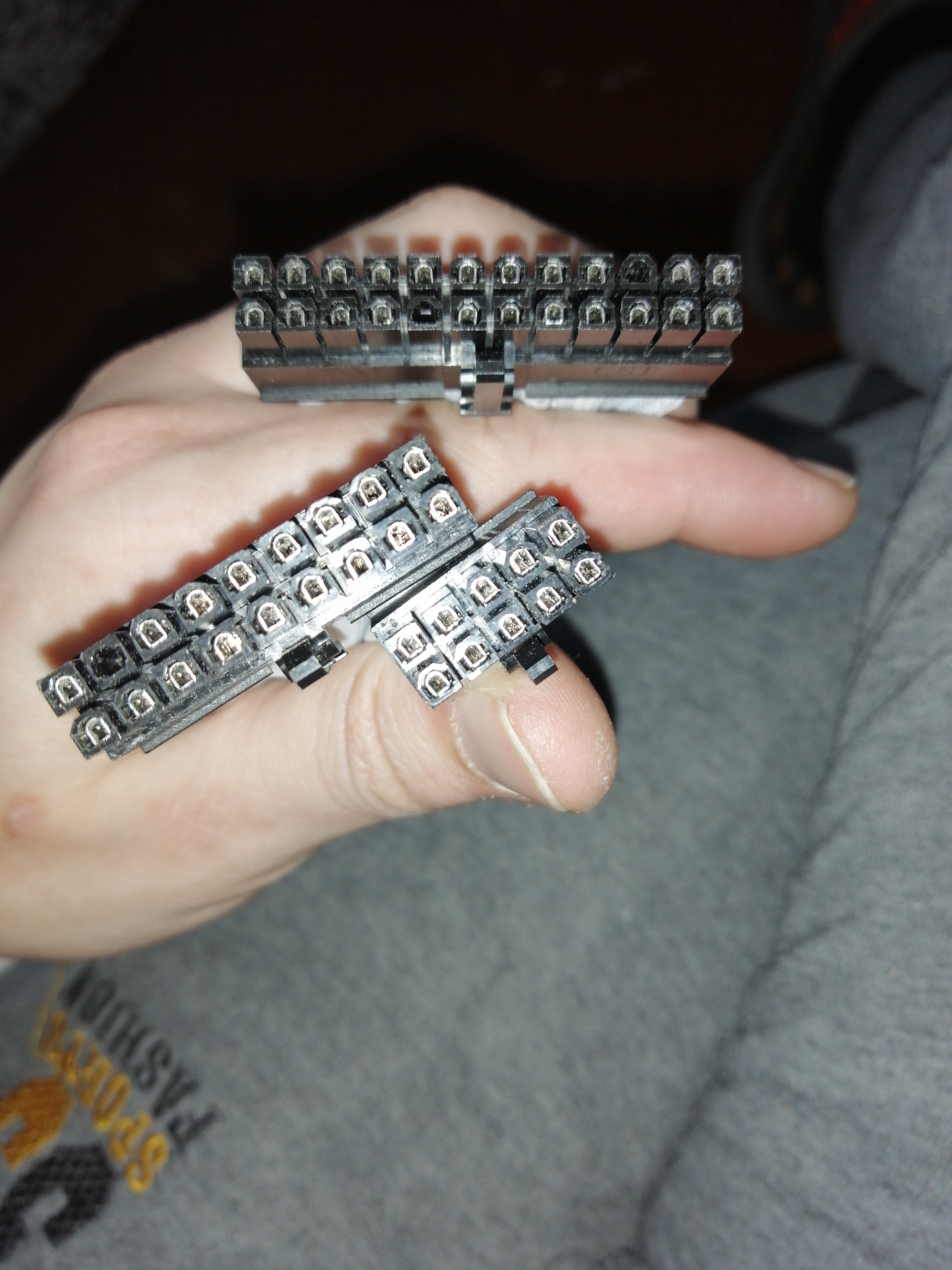 Люди добрые помогите с распиновкой блока питания game storm dq750-m с 24пин на 18+10пин. Может у кого то есть родной провод, не тронутый? Блок точно рабочий был, пока я по синиве оплётку не начал делать, теперь концы собрать не могу. С 24 пин на метеринскую плату, там все ясно. А вот к самому блоку не ясно....