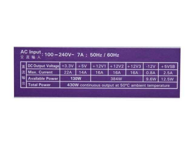 430 по всем линиям, а по линии 12В - только 384 из них. Видно же по наклейке. http://images10.newegg.com/NeweggImage/ ... 939-13.jpg Решает именно линия 12В, как и сказано в п. 1 шапки. Общая мощность там нигде не контролируется (поэтому я и говорю постоянно, что паспортная мощность ничего не значит). Только токи по конкретным линиям.