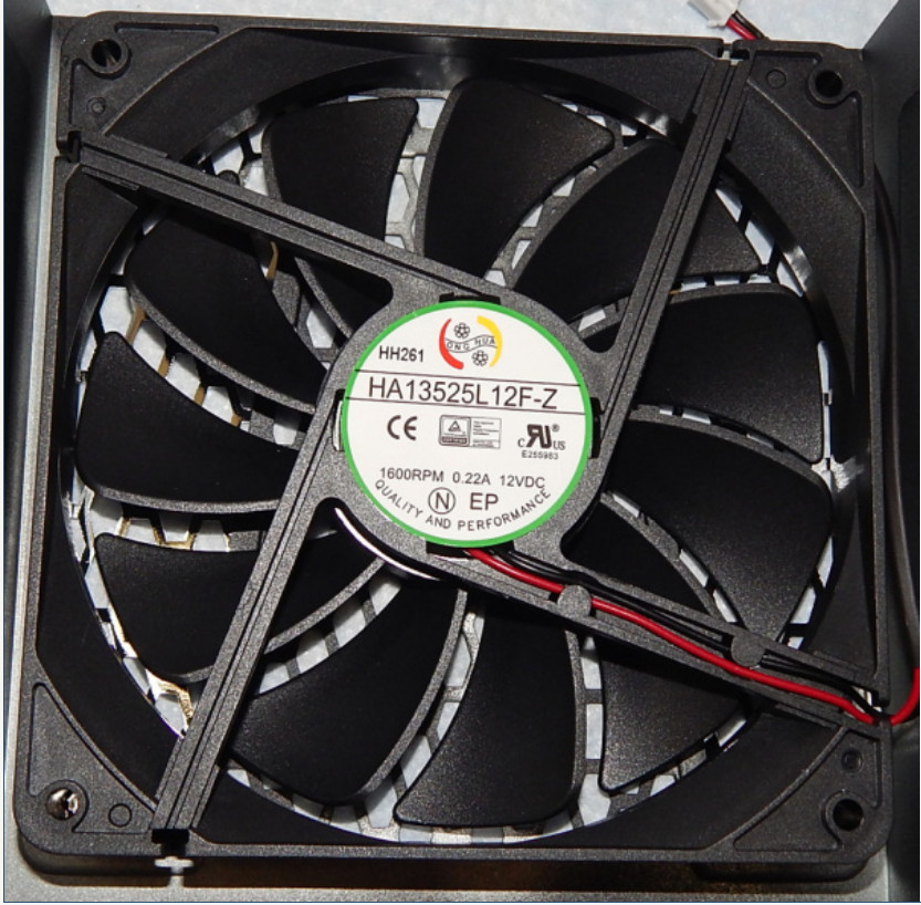 Под нижней панелью скрывается довольно большой 135-мм 11-лопастный вентилятор HONG HUA HA13525M12F-Z. #77