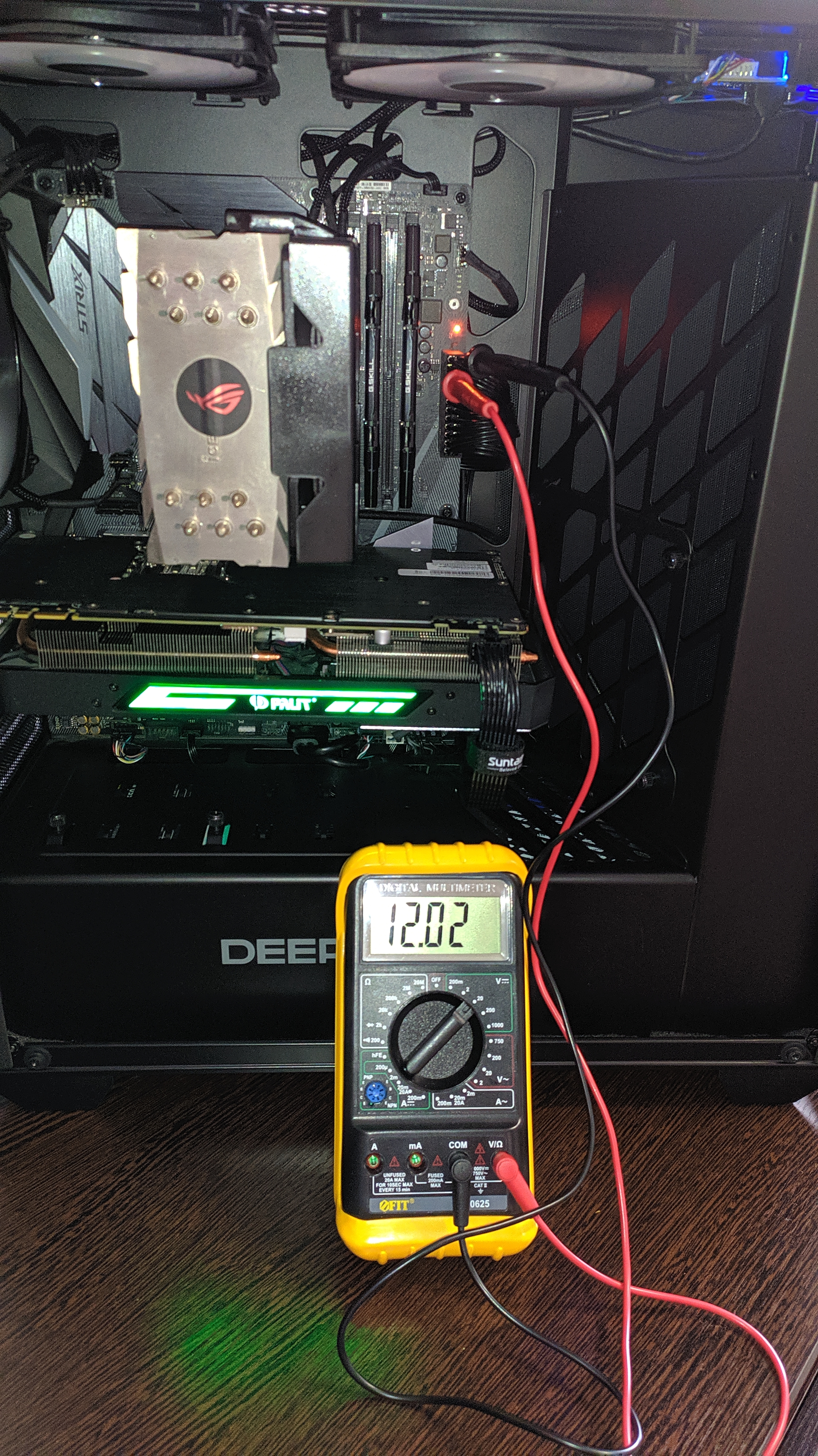 сделал по другому, мерил прямо с мат платы , на фото вольтаж без нагрузки , на видео с нагрузкой