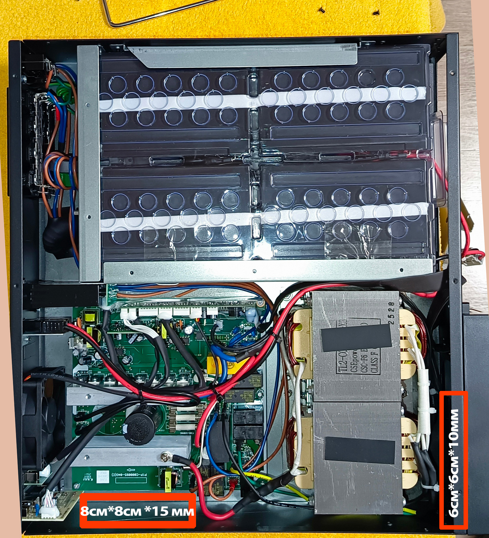 Яков, Вы дважды проявили невнимательность. 1. Я оставил себе пространство для манёвра, сказав "возможно". 2. Большие/боковые стенки корпуса того ИБП, который взял Alvar_i - "глухие". Перфорация, имхо, спереди (сбоку от дисплея) и сзади (там, где штатный вентилятор). На той фотографии указаны места внутри ИБП, где, возможно, получится разместить дополнительные вентиляторы. И да, у меня был опыт модификации охлаждения в ИБП.
