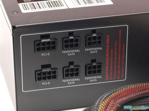Что это за кабели 6-pin PCI-E, которые вставляются в разъемы для SATA/PATA? Можно их фотографию, по возможности так, чтобы были видны разъемы с одной и другой стороны кабеля? В PCI-E разъеме (8-pin) на БП - 3 пина +12В, а в SATA/PATA - только один, и если на него повесить ту же нагрузку (а видеокартам ничего, кроме 12В, с этих разъемов не нужно) - по жиле 12В там будет утроенный, в сравнении с подключением к своему обычному разъему, ток. Я сомневаюсь, чтобы Hiper предусматривал такое штатно. В обзоре - http://megaobzor.com/obzor-Hiper-Type-K ... stemy.html - ничего похожего в штатной комплектации нет.