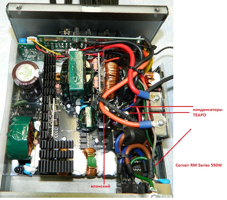 здесь также видно что конденсаторы TEAPO для фильтрации напряжения +12В используются, есть фото RM1000 это что-то новое, я такое не видел у CWT похоже используется LLC — резонансный полумост