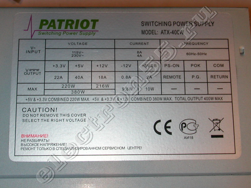 И ещё один вопрос, есть у меня БП patriot atx-400w, можно ли его эксплуатировать с нагрузками по 12V, близкими к 200W? В интернете про эту фирму совсем мало инфы.