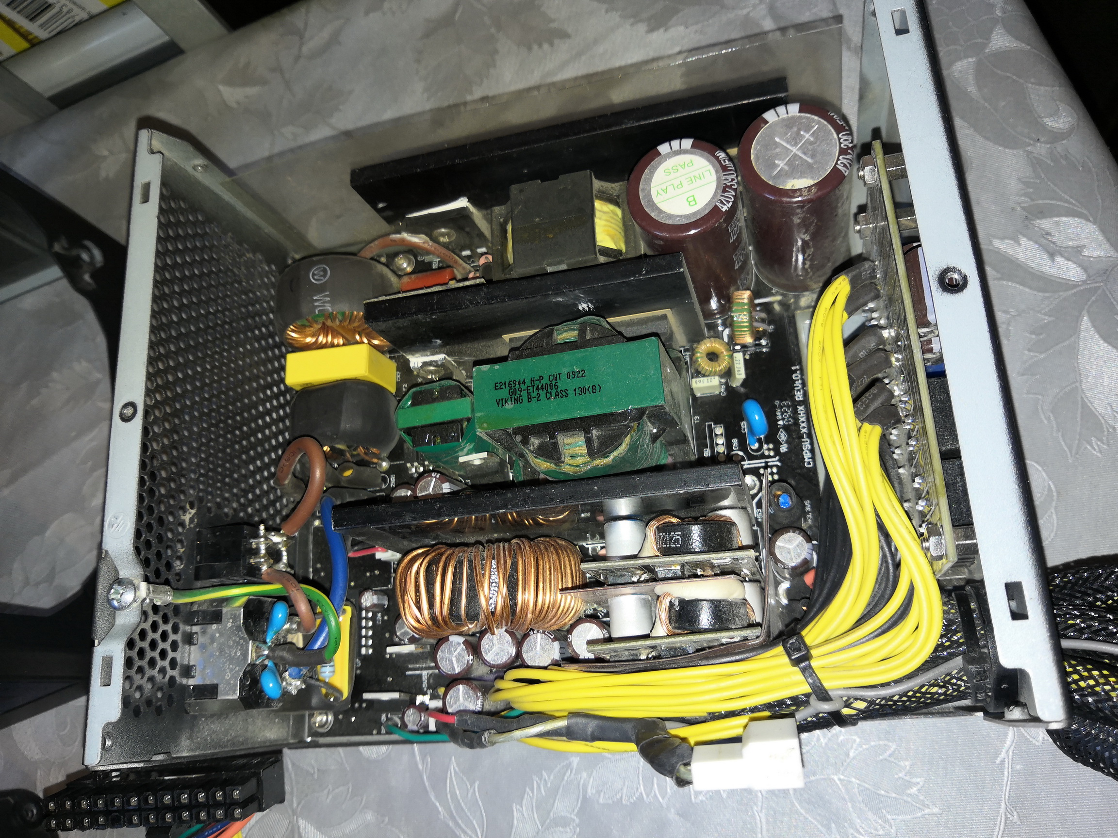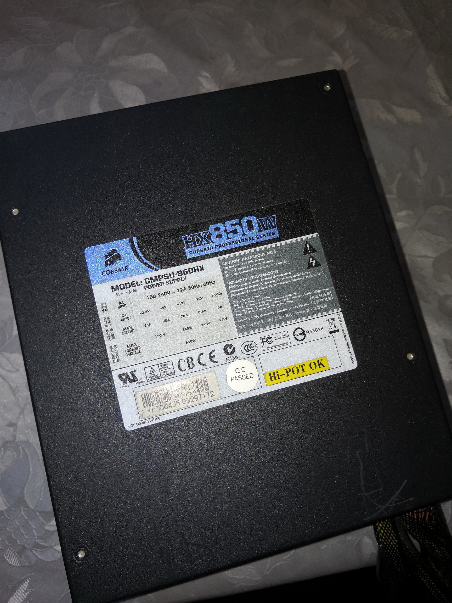 А я отправил блок питания Corsair HX850W на пенсию Проработал он у меня больше 12 лет. Он питал процы на: 1366, 2011, 1151 сокетах. Видяхи:radeon 5870, 2 шт. 480GTX в sli, GTX 970TI, 2080RTX. Он и сейчас в рабочем состоянии, но принял решение заменить на новый б.п. Один кондер смотрю подтекал, Вроде как остальные без повреждений. Если электролиты заменить, наверное еще столько же смог бы проработать.