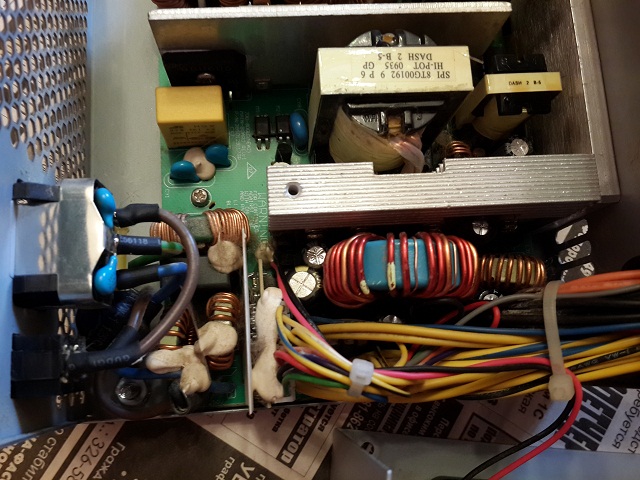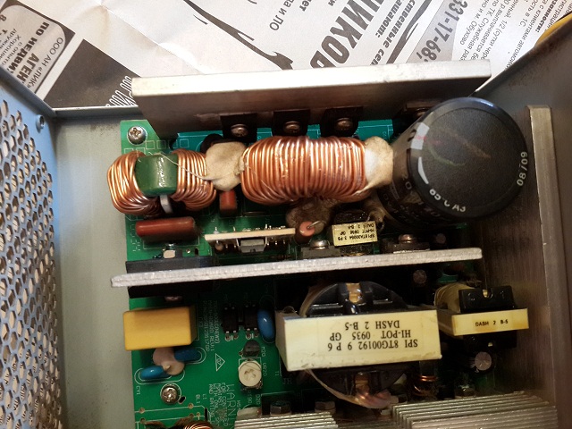 Спустя почти 8 лет приказал долго жить Termaltake Thoughpower 700W (W0105), точнее МП, будучи к нему подключенной, не запускается через PWR SW и нет питания на USB, хотя если замкнуть (отдельно от МП) PSU on signal (зелёный провод) и GND, то БП запускается. Я так понимаю сдохла «дежурка»? И причина, наверняка, кроется нём («беременный» samxon 2200мкф 10в)?: