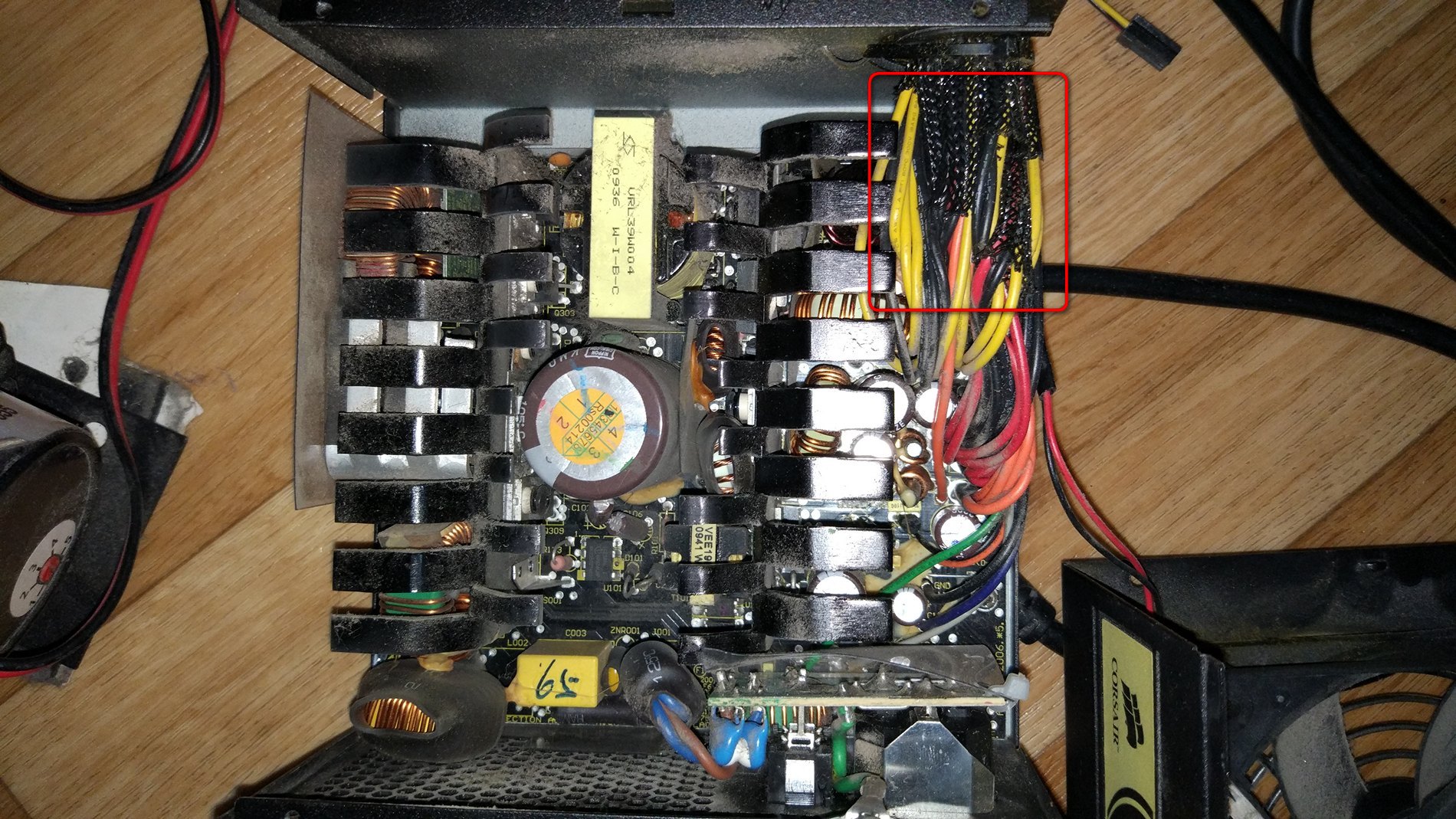 Коллеги, есть Corsair CMPSU-650TXEU Еще работает, но - в одной своей части, там в углу под проводами(будет ниже на фото), начал жутко греться, вплоть до начинания вонять проводкой. Греется и воняет не важно уже под нагрузкой или нет, до этого нагружал его ну может мощностью ~370Вт. По логам смотрю купил его в 2010м году, т.е. 7 лет назад. Фото, фас, профиль, красным обвел где греется. Обратил внимание что обмотка(обведенная красным) изменила свой цвет на более темный. Собсно вопрос - кто подскажет толковую мастерскую желательно в районе савеловского радиорынка? Впринципе мультиметр, паяльник есть, что-то не сложное и сам смогу.. Еще раз открыл замерял температуру, где-то за минут 10 вот та катушка с изменившимся цветом провода нагревается до 100С и продолжает расти..