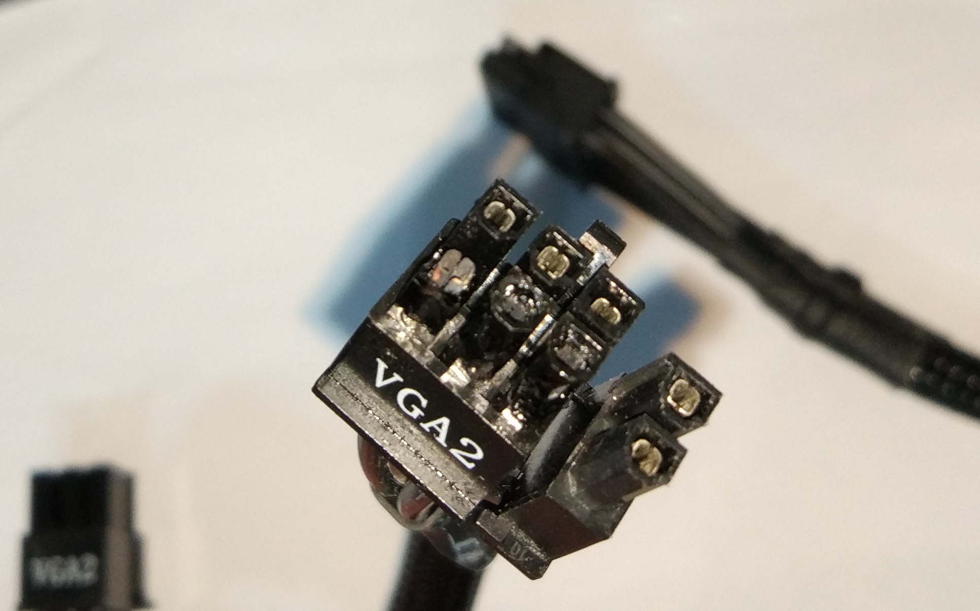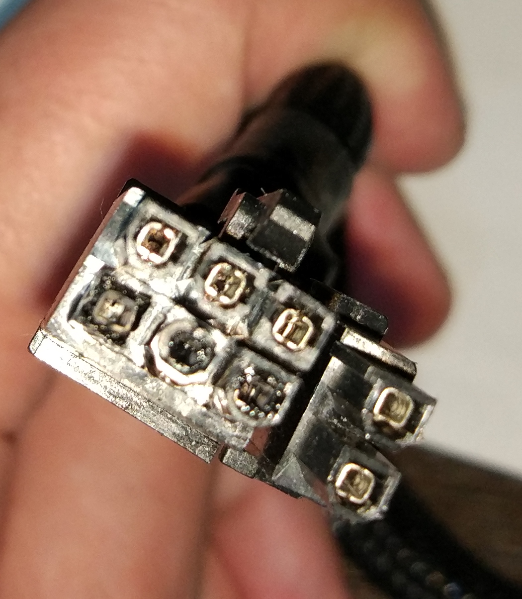 Коллеги, по подгоревшим разъемам сюда или есть более подходящая тема? Вобщем есть не самый дешевый БП "be Quiet! Dark Power Pro 11 550". Через некоторое время появились спонтанные ребуты компа. После не самых быстрых исключений все дороги привели к видяхе(ATI AMD R9 290). Только потому что решил снять с нее водянку(Full cover) и поставить родной охлад(дабы убедиться что дело не в каком-нибудь подтекании/закорачивании), при перетыкании проводов заметил вот такое(см. фото): Подгорело с обеих сторон кабеля, как тот конец что был в БП, так и тот что был в видяхе. Опустим стоимость БП и надежды на качество...подскажите где можно купить(Москва) качественные разъемы этих двух подгоревших типов(ну и пины к ним)? Или на али каком-нибудь... Спасибо.