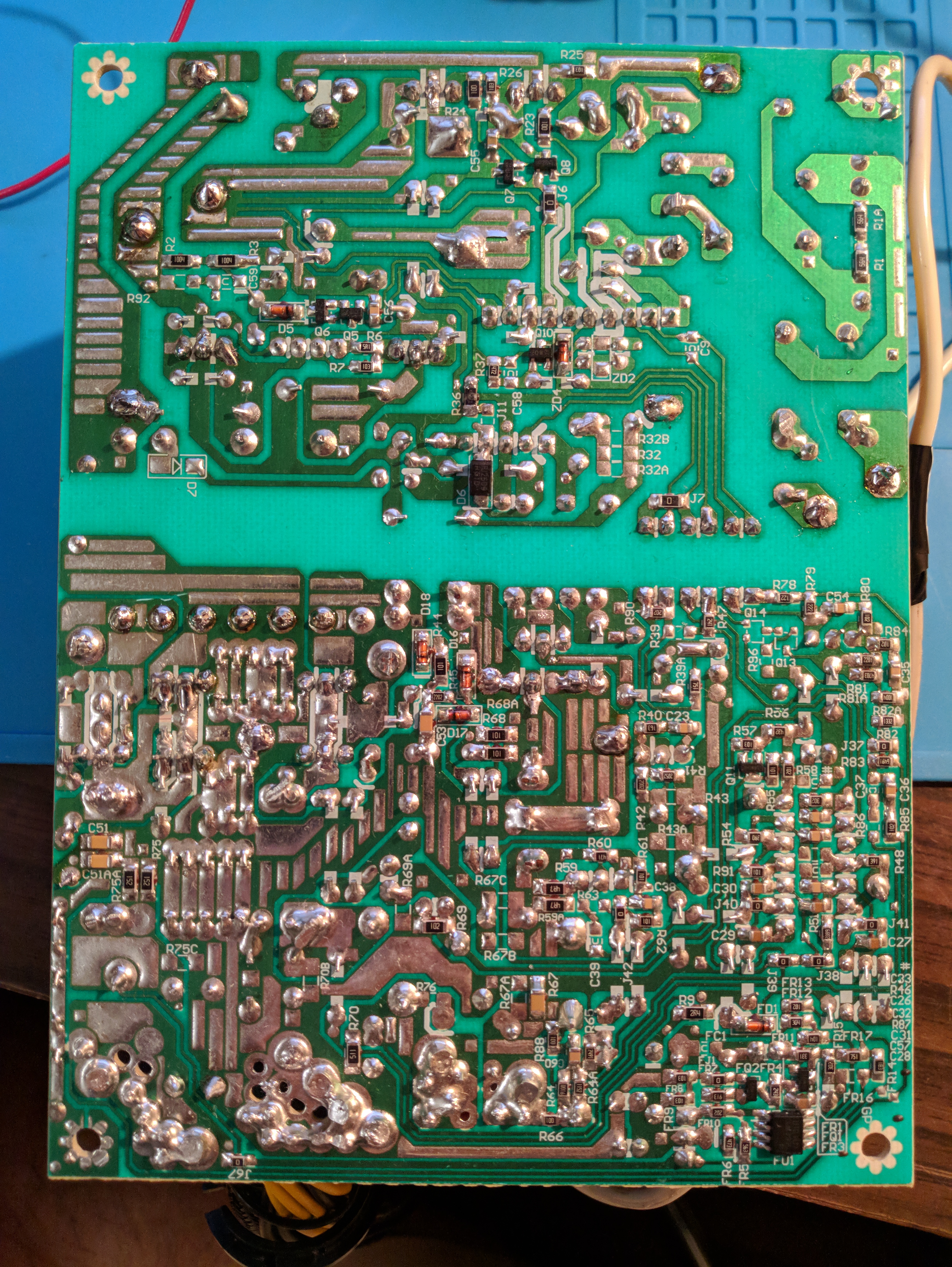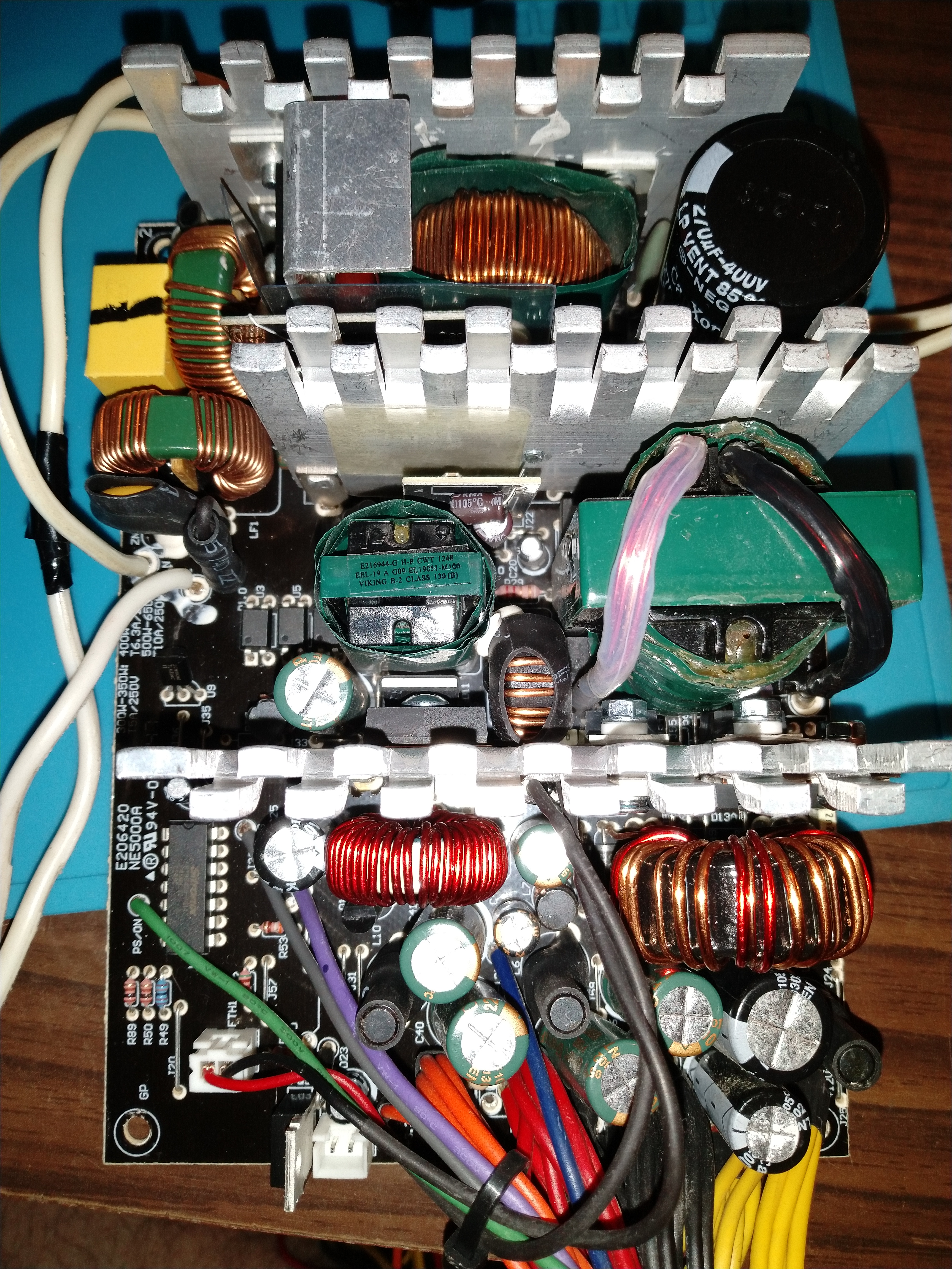 Выпаял обе платки. Шим на CM6800TX. Но я затупил и не разрядив все кондеры начал выпаивать и случайно закоротив отсосом пару ног на плате шим, бахнуло. Теперь навсякий шимку уже заказал с али, до кучи еще и супервизор