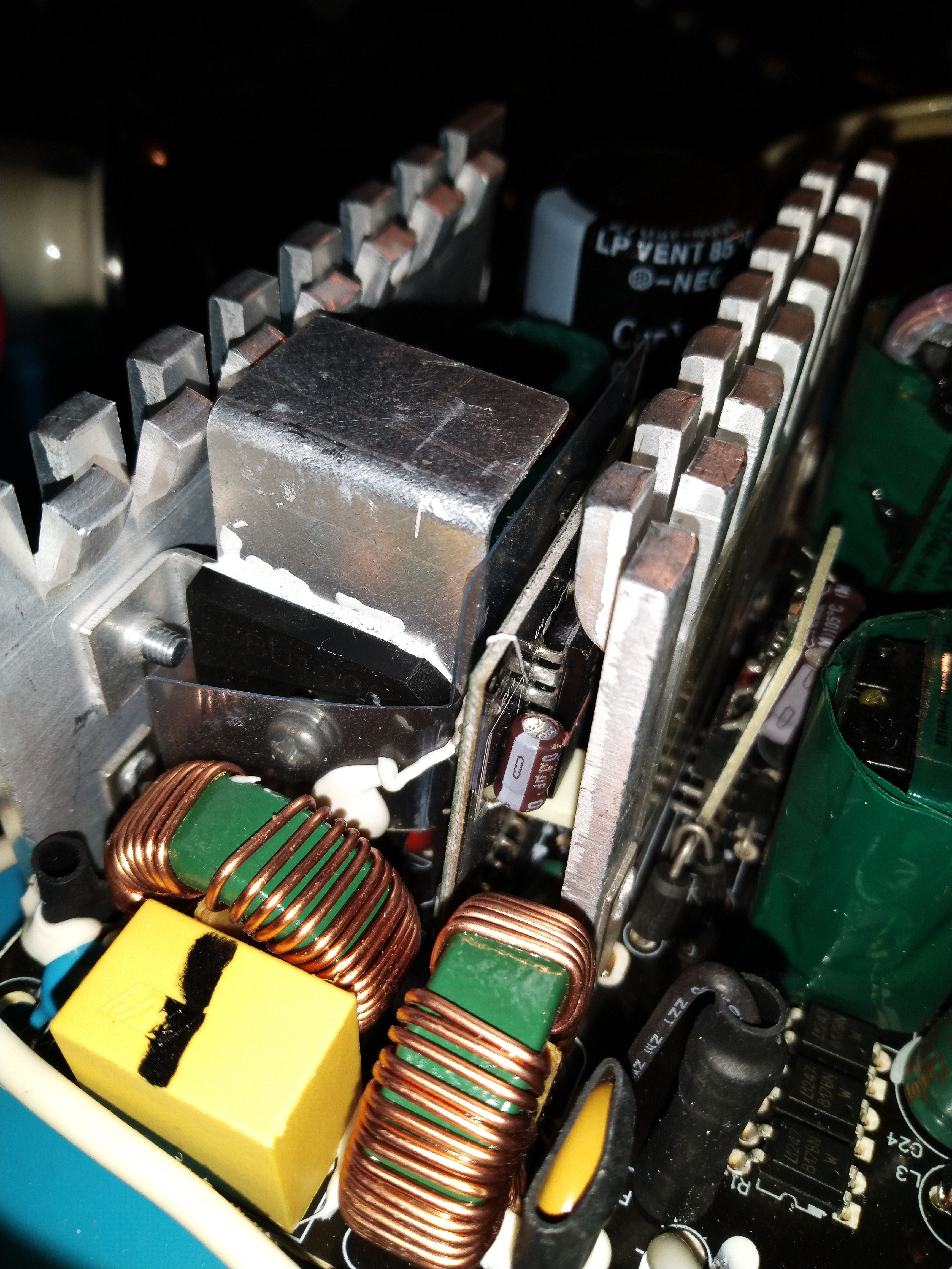 Страданиям моим нет предела. Может тут кто подскажет чего. Имеется блок Chieftec NITRO II 500W BPS-500S2 Не запускается. Схемы в сети не нашел. Тут искал, что то ничего не помогло. По внешним признакам подгорел резистор R36, так как схем нет, не известен его исходный номинал, сейчас он не в обрыве. Дежурка есть 5в. Короткого вроде ни где нет. По косвенным признакам блок именно не запускается, а не уходит в защиту. Проверял с выпаиванием все силовые транзюки и диоды шоттки, оптопары вроде тоже ок. Электролиты ок. Супервизор Sitronix ST9S429-PG14, питание 5в на него приходит. Шимка не ясно где, скорее всего на вертикальной плате между радиаторами, маркировка не видна, чуть позже выпаяю плату.