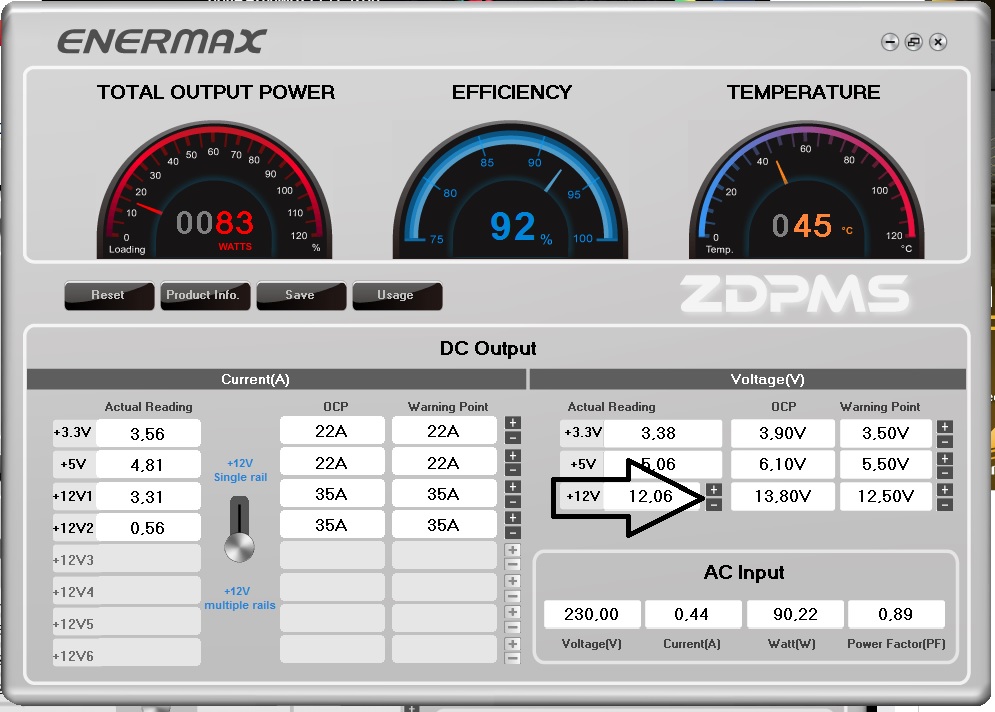 With the ZDPMS software (“Zero-Delay Power Monitoring System”) users can easily monitor the power supply operation and customize certain functions, eg. switch between multi- or single-rail mode, fine tune the 12V output voltage or set the trigger points for OCP/OVP warning messages.